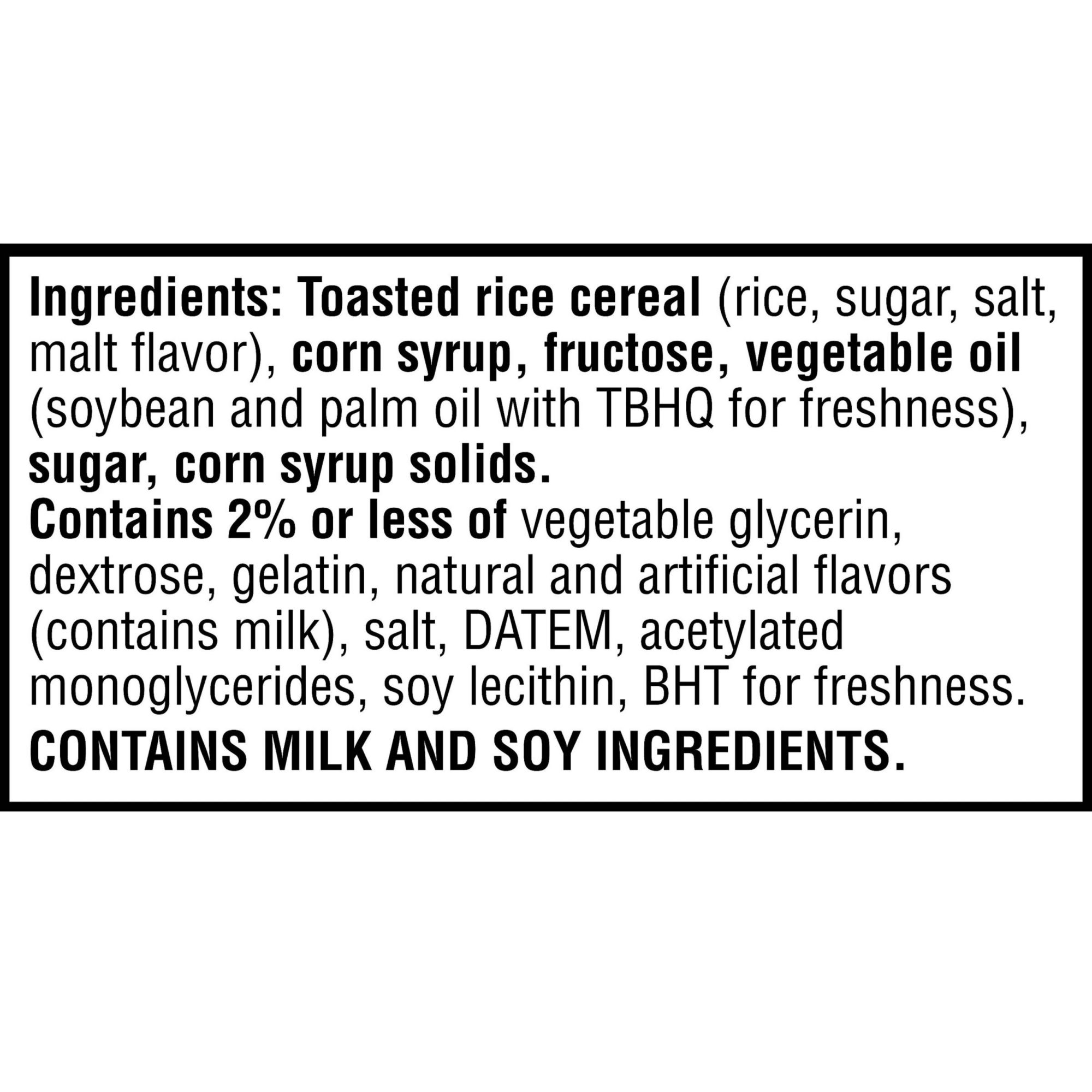 A classic dessert snack for any occasion With puffed, oven-toasted rice cereal and the flavor of soft marshmallows No high-fructose corn syrup A family-favorite, on-the-go snack that's perfect for kids and adults Conveniently packaged and ready to travel Stow some in your tote bag, car, and desk for anytime snacking Includes sixty rice crispy marshmallow squares