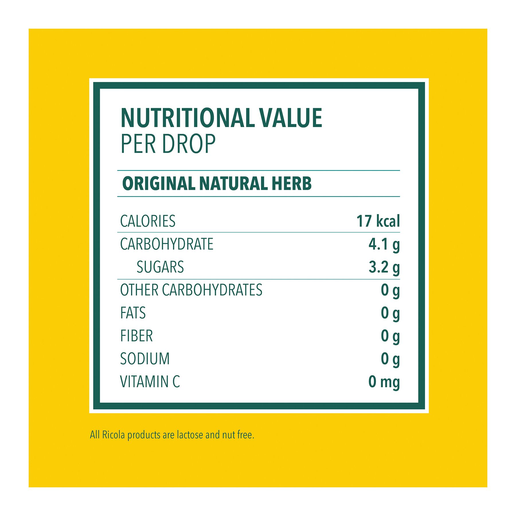Ingredients: Menthol, Color (Caramel), Extract Of A Ricola Herb Mixture (Elder, Horehound, Hyssop, Lemon Balm, Linden Flowers, Mallow, Peppermint, Sage, Thyme, Wild Thyme), Natural Flavor, Starch Syrup, Sugar.