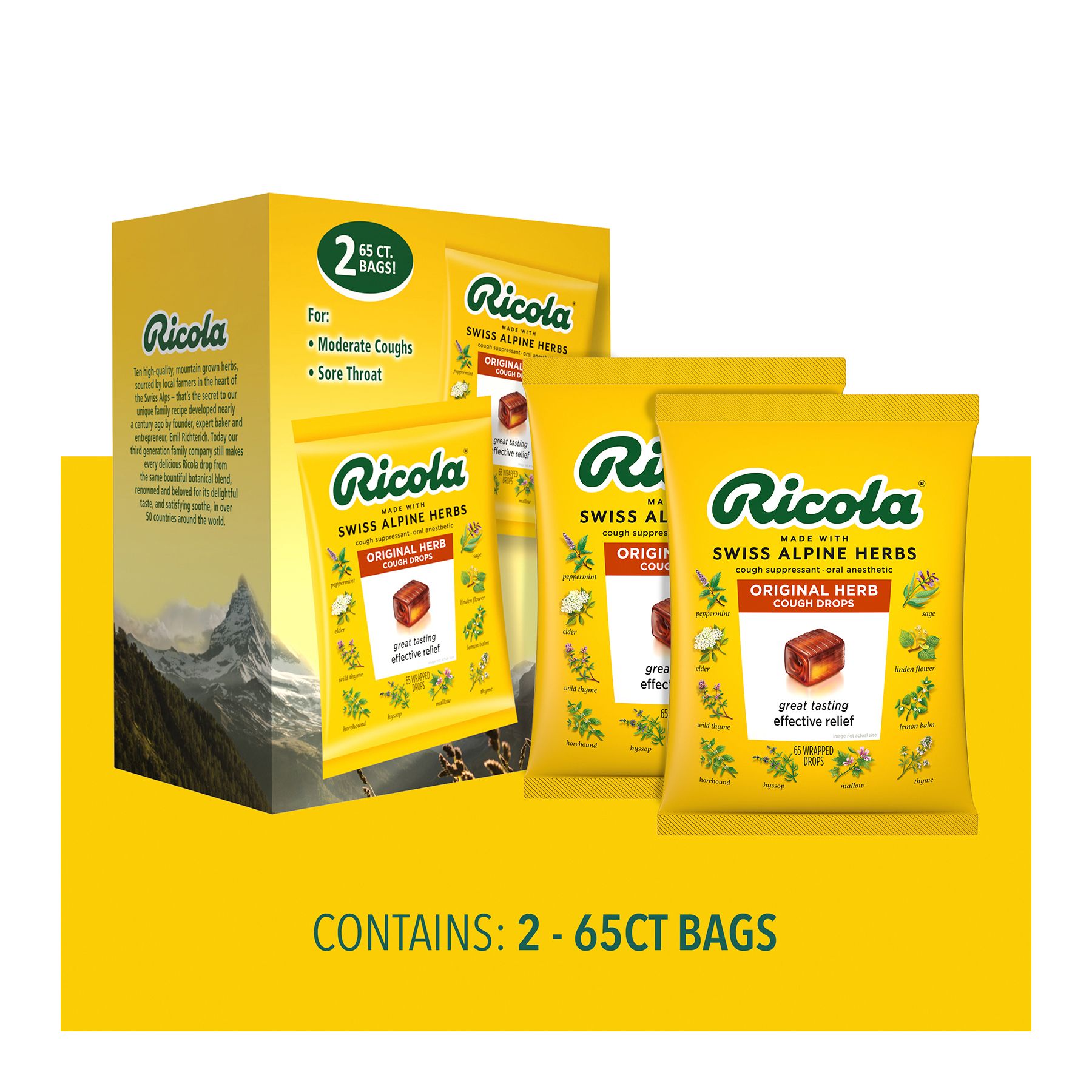 Includes herb cough drops, 130 ct.