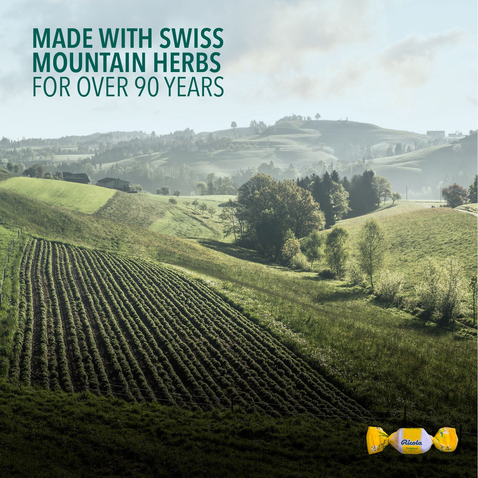 The herbs used in Ricola drops are exclusively grown on Swiss soil using sustainable farming methods, without any artificial pesticides, insecticides, or herbicides