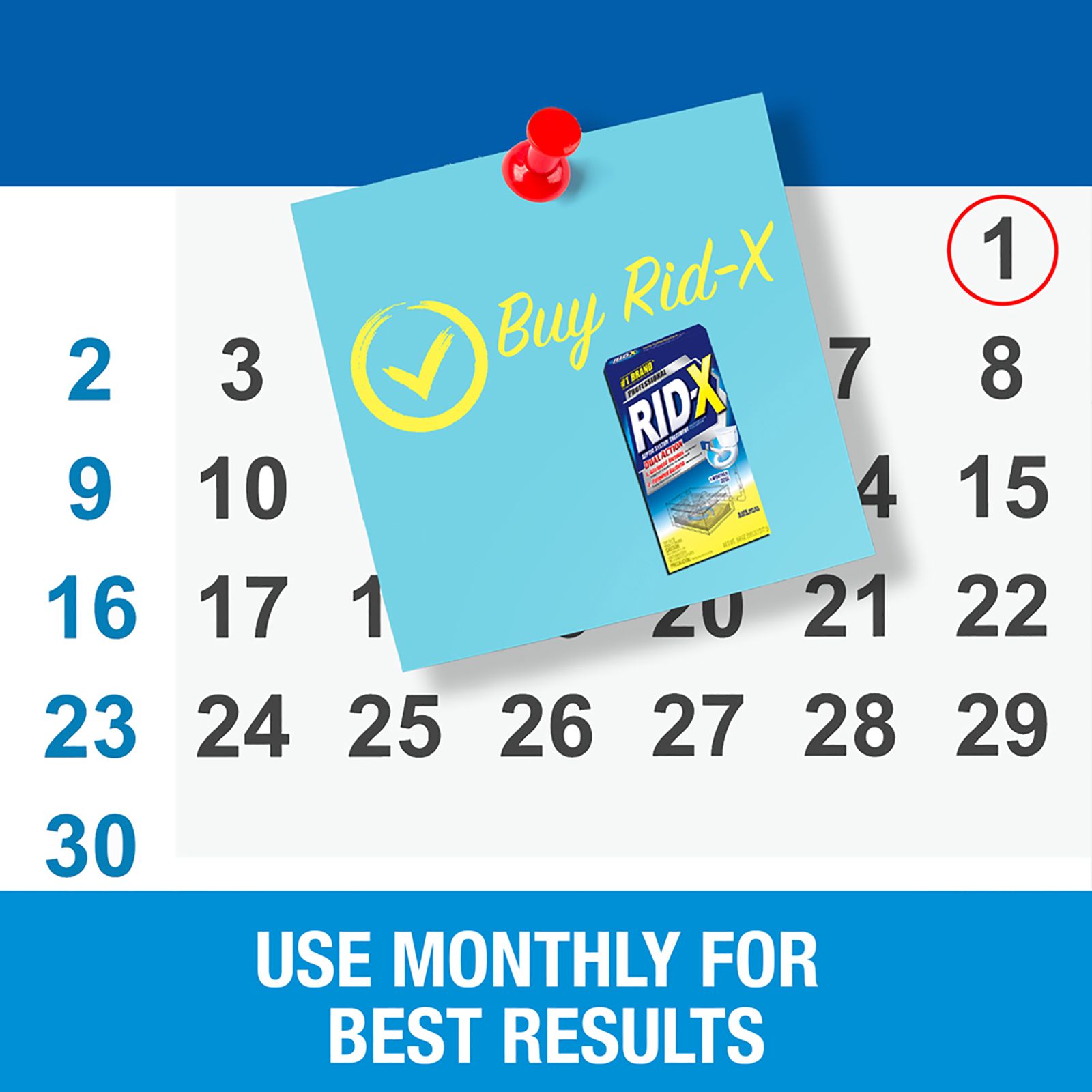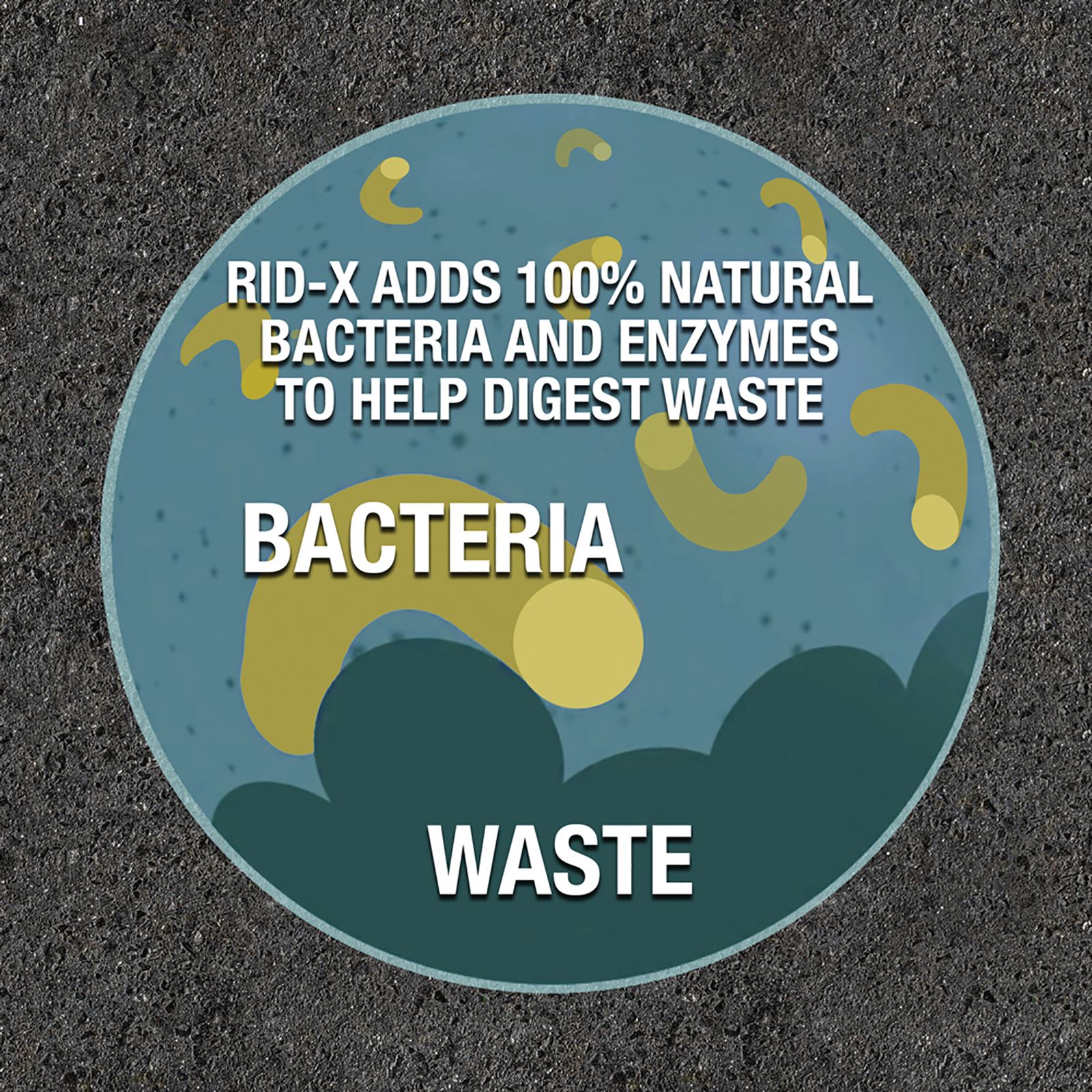 Rid-X Septic Tank System Treatment products will give septic system homeowners peace of mind by helping maintain a free-flowing system. Rid-X formula is scientifically formulated with 100% natural bacteria and enzymes to digest household waste. By adding Rid-X to the septic system every month, along with regular pumping, you can help prevent expensive septic backups and prolong the life of your system.