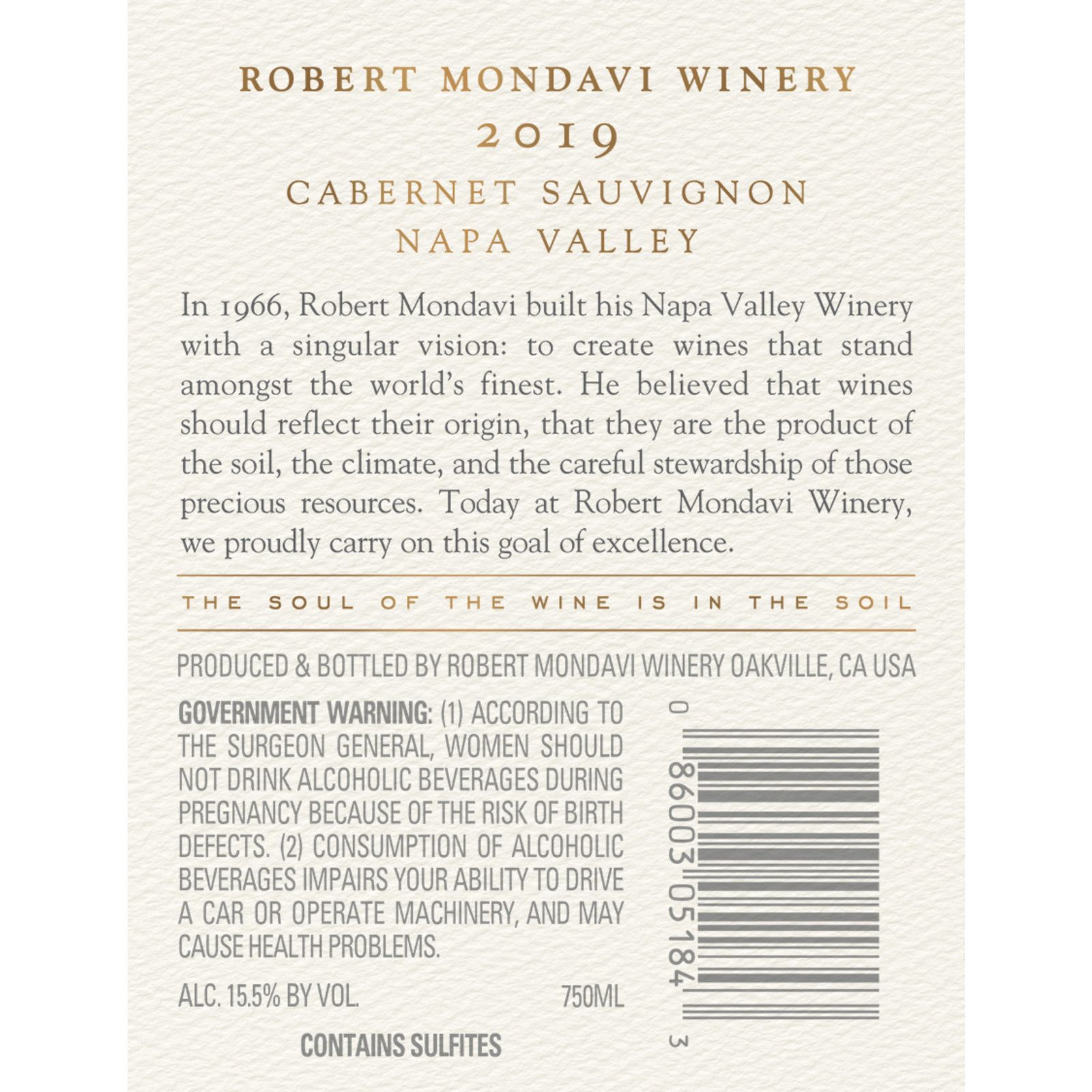 Robert Mondavi Winery Napa Valley Cabernet Sauvignon Red Wine delivers intense dark plum and blackberry fruit flavors across the palate, complemented by aromas of licorice, chocolate, violet, and warm vanilla spice. Fresh and lively, this delicious, full-bodied red wine is marked by plush tannins and a polished structure. Fruit for this Napa Valley wine is sourced from selected sites throughout Napa Valley, from St. Helena to Carneros. Composed primarily of Cabernet Sauvignon with Petit Verdot, Cabernet Franc, and Malbec for added complexity. The fruit was harvested by hand and cold soaked for several days for enhanced freshness and fruit character. The wine was aged for 18 months in French oak (32% new). Pair a glass of this delicious red wine with bison burgers and blue cheese or with your favorite steak, lamb, or pasta dishes. For optimal taste, store this 750ml bottle of wine at room temperature, but refrigerate for about 30 to 60 minutes before serving. Please enjoy our wines responsibly. 2025 Robert Mondavi Winery, Oakville, CA Please enjoy our wines responsibly. 2025 Robert Mondavi Winery, Oakville, CA.