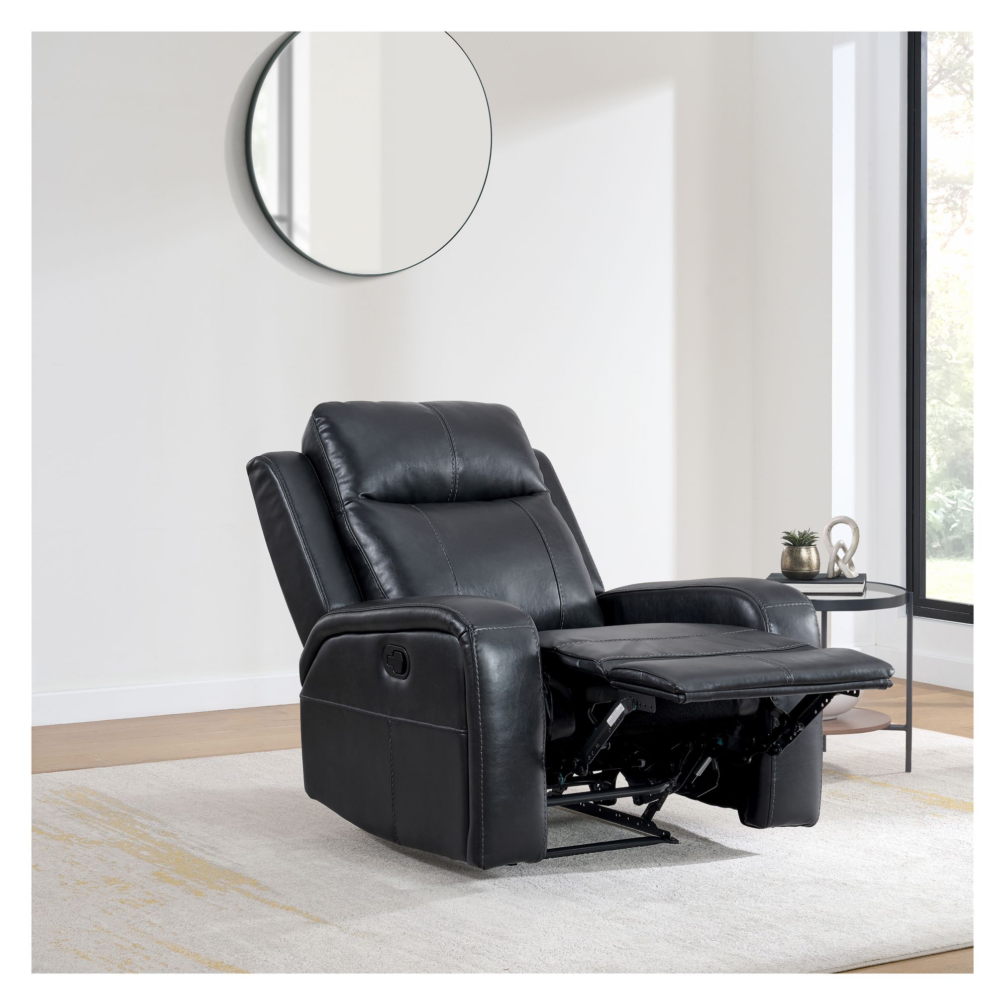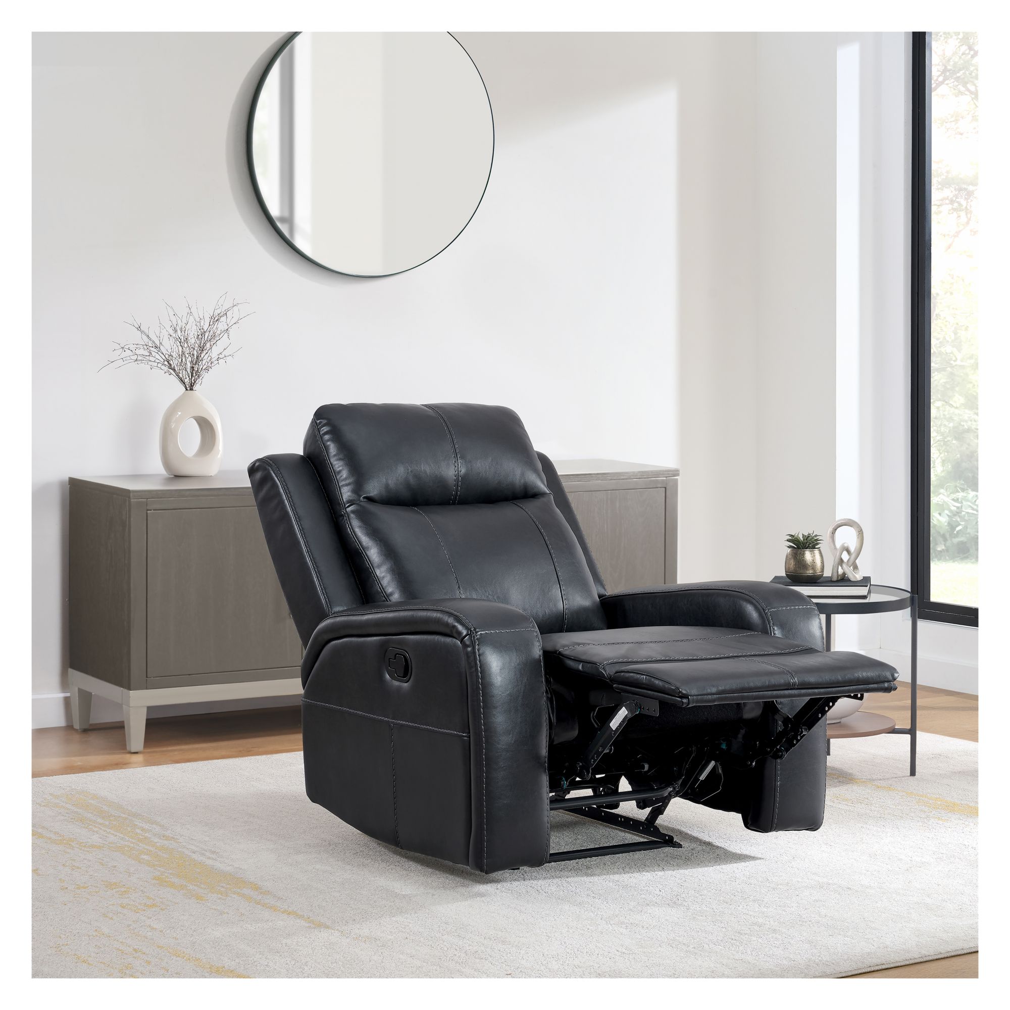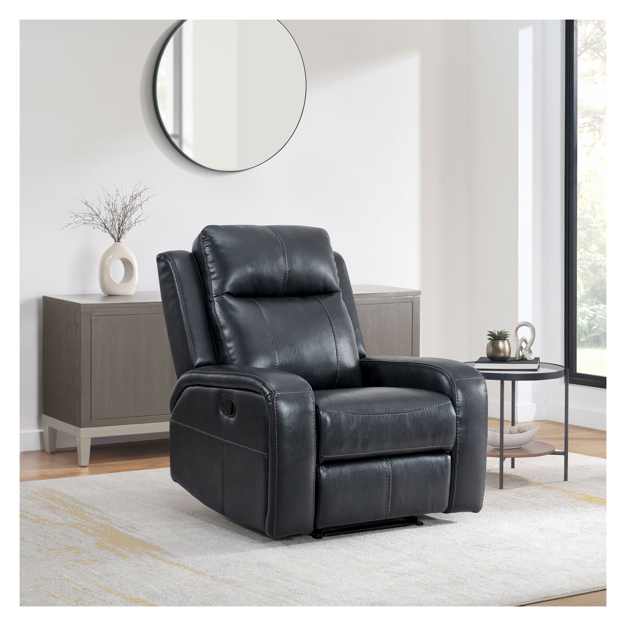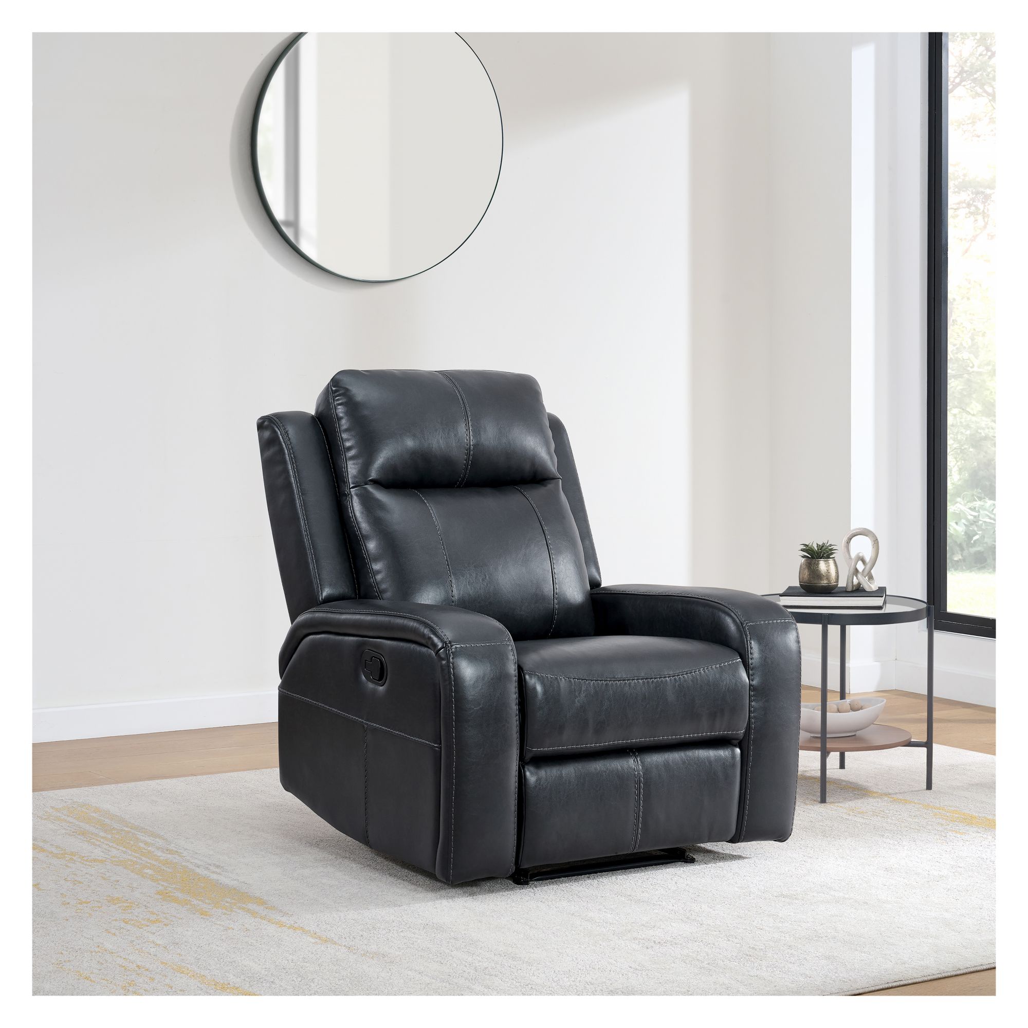 Introducing the Blakely Manual Recliner, the perfect blend of comfort and style. Effortlessly recline for ultimate relaxation. Upholstered in a durable and easy to clean material, this recliner combines a sleek frame with plush comfort. An ideal addition to any living space, providing comfort for any activity, whether it's reading, watching TV, or simply unwinding after a long day.