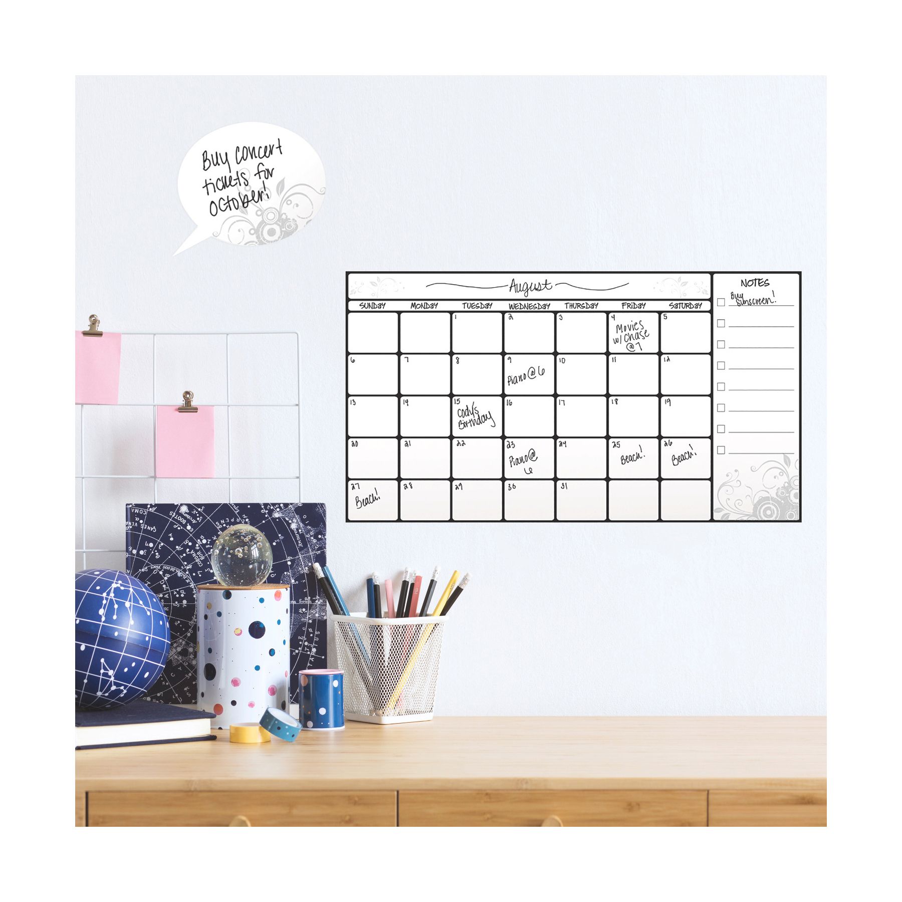 Includes seven dry erase wall decals and a dry erase marker