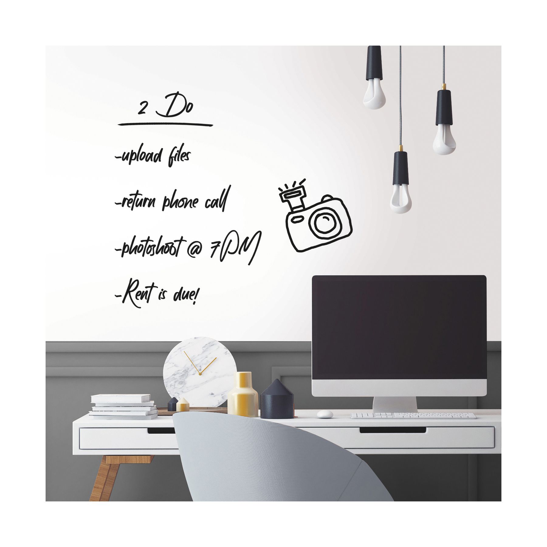 Simple yet statement-making, Dry erase peel and stick wallpaper is sure to catch the eye of everyone who enters your home. This utilitarian product creates a space for the mind to wander. Perfect for the little ones whose creativity expands to the walls, simply peel from the backing and stick to any smooth surface of your choice. From walls to furniture and more, create a come you’ll love with peel and stick wallpaper from RoomMates.