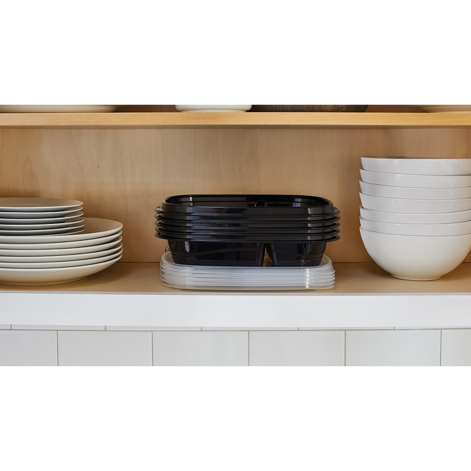 Includes 10- 4 cup rectangle, 10- 3.7 cup divided rectangle, 5- 2.35 cup divided snacker, 5 -1.25 cup, lids