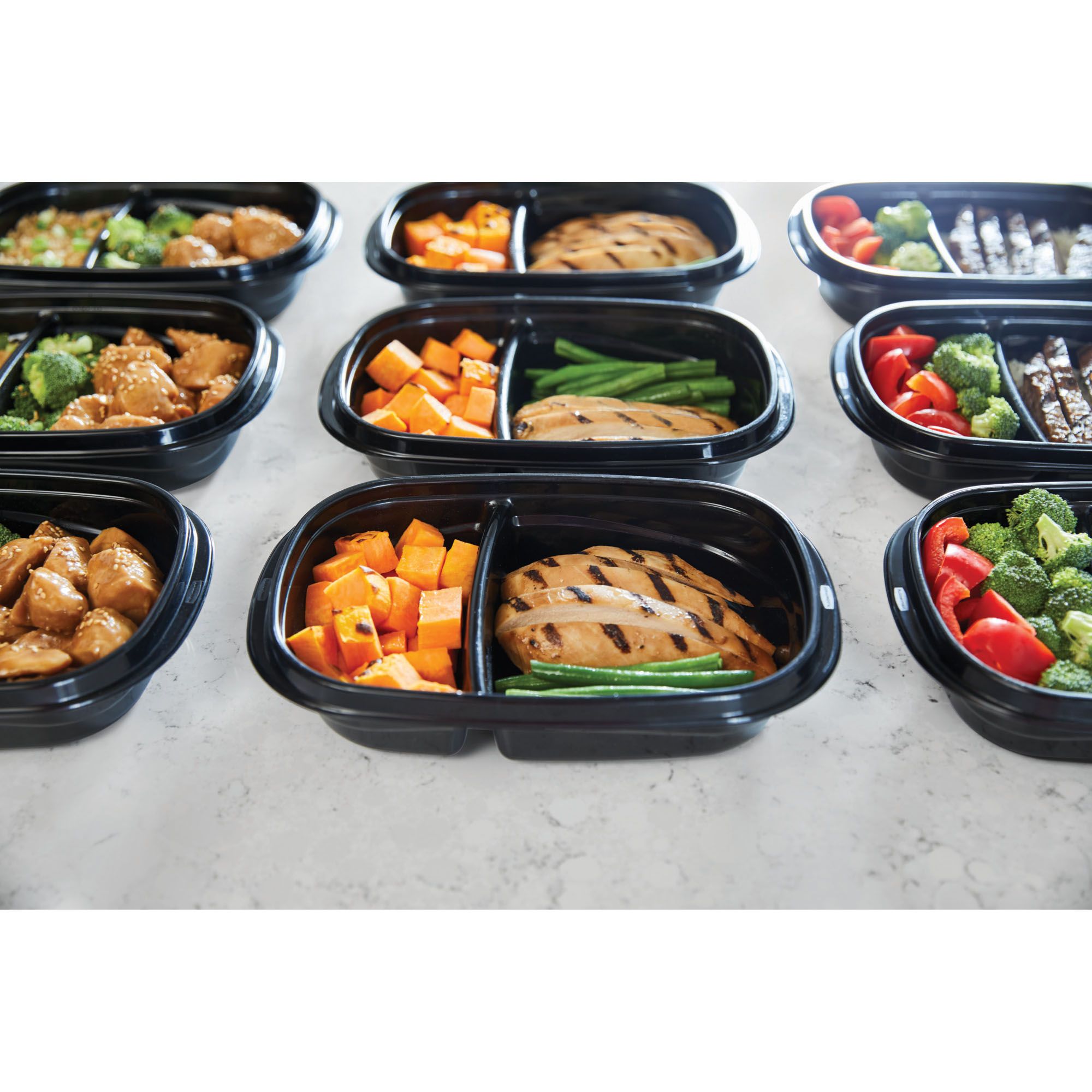 Divided food containers are ideal for meal prep: make and freeze up to two weeks of meals ahead of time
