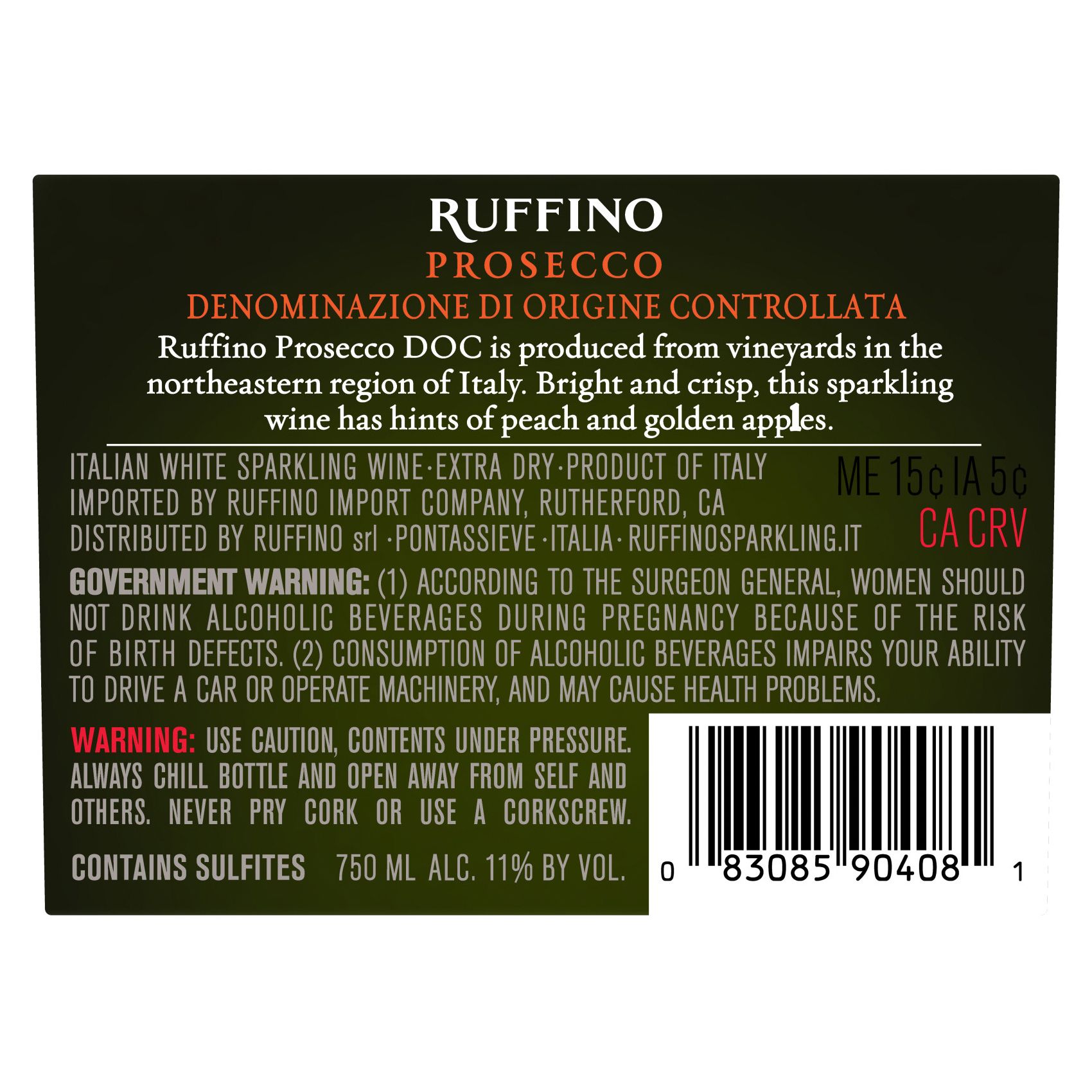 One 750ml bottle of Ruffino Prosecco DOC Sparkling White Wine, containing five 5 fl. oz. glasses of wine