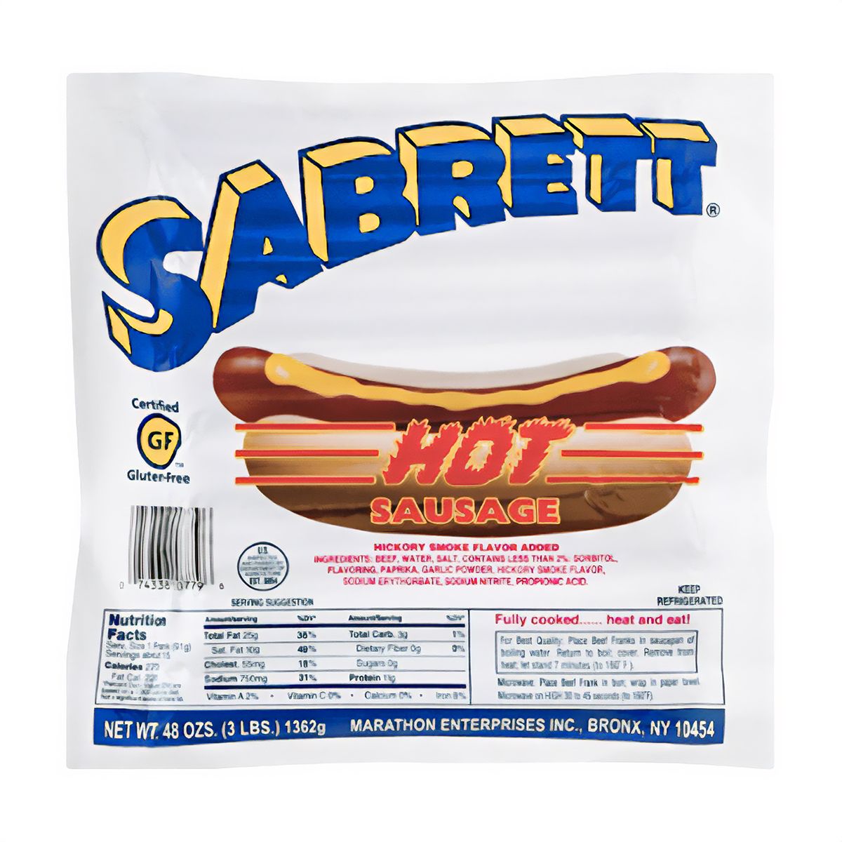 Experience the New York City favorite Sabrett All-Beef Hot Sausage whenever you want to. The sausage is made from 100% beef, seasoned with all-natural spices and never frozen.