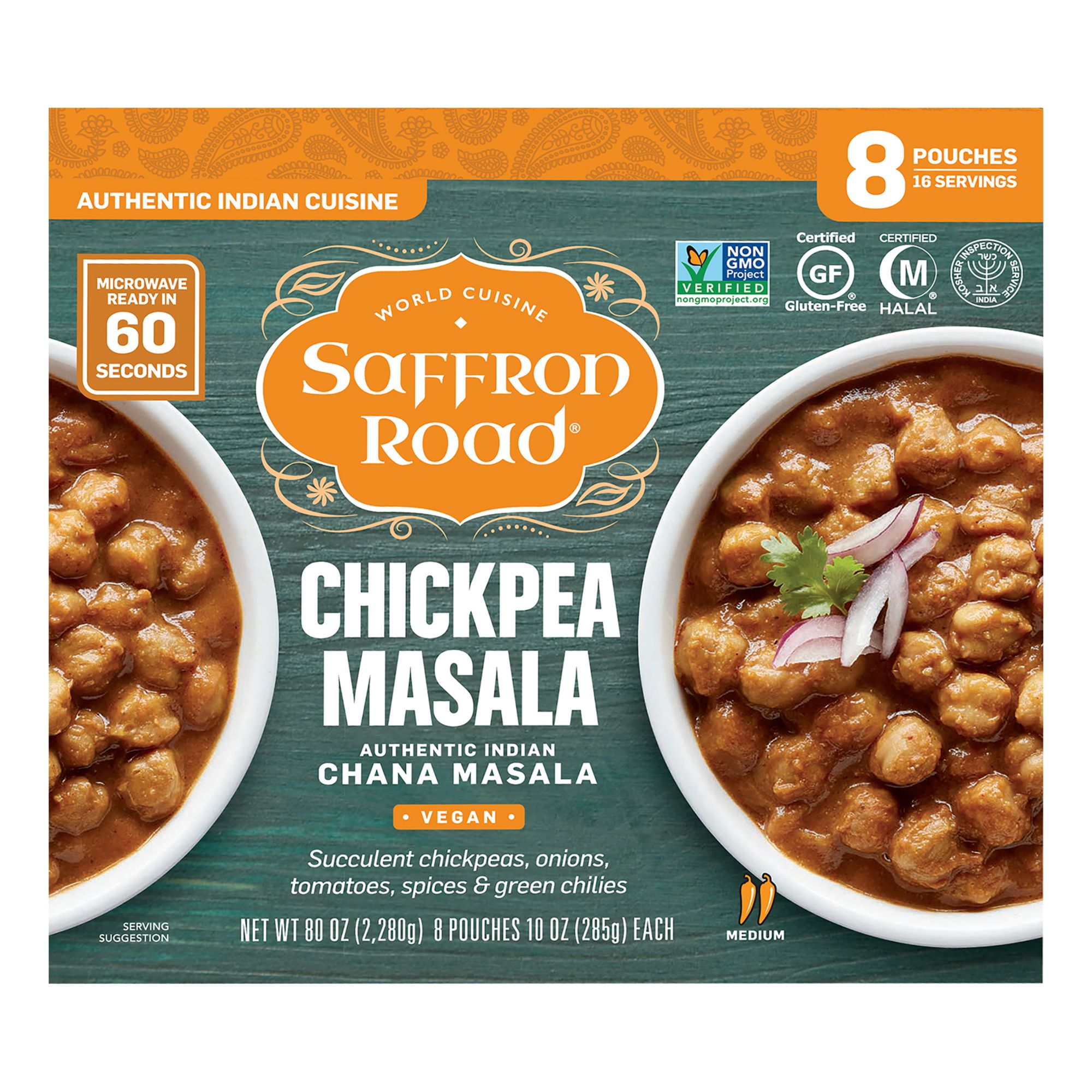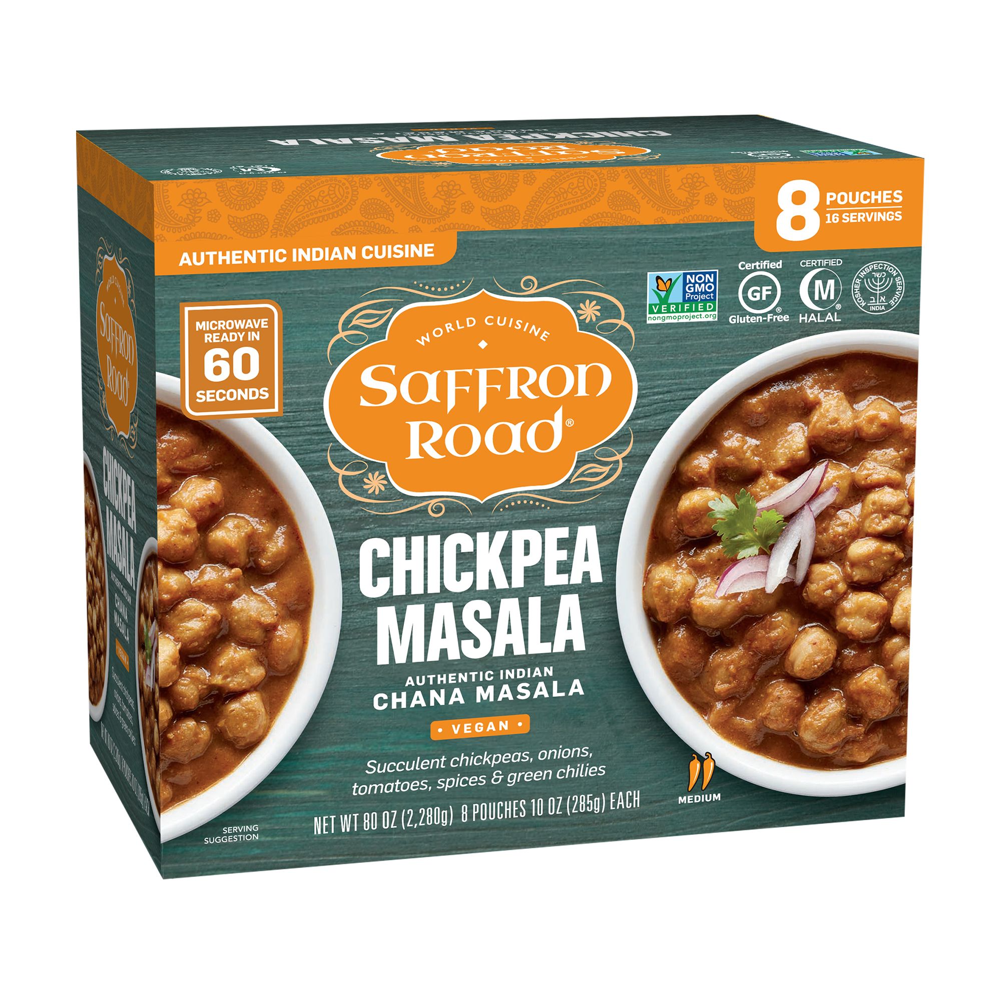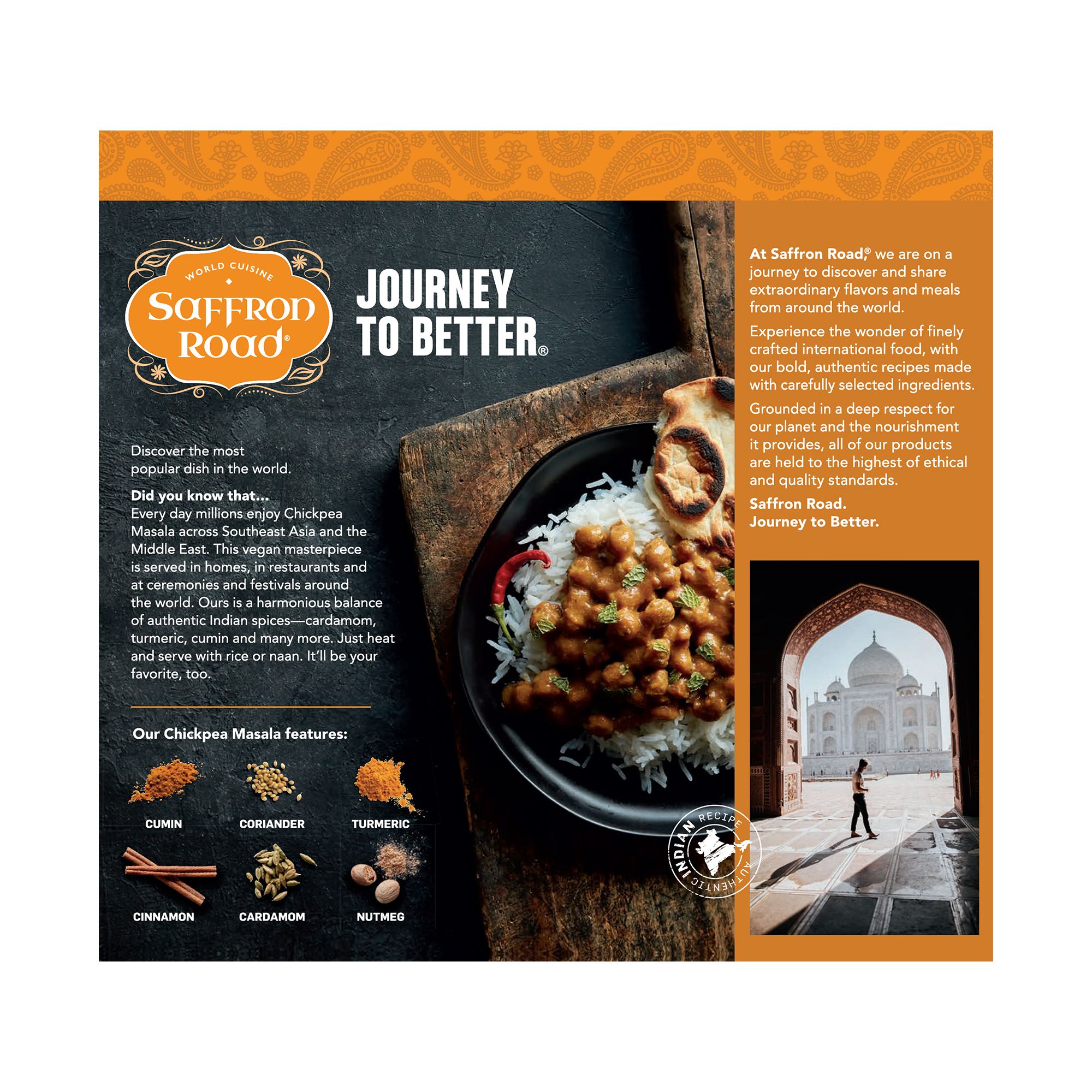Discover the most popular dish in the world. Everyday, millions enjoy Chickpea Masala across Southeast Asia and the Middle East. This vegan masterpiece is served in homes, in restaurants, and at ceremonies and festivals around the world. Saffron Road's Chickpea Masala is a harmonious balance of authentic Indian spices such as cardamom, turmeric, cumin, and so much more. Just heat and serve with rice or naan for a great meal solution. Halal and kosher certified, this meal is also certified gluten free, and verified non-GMO.