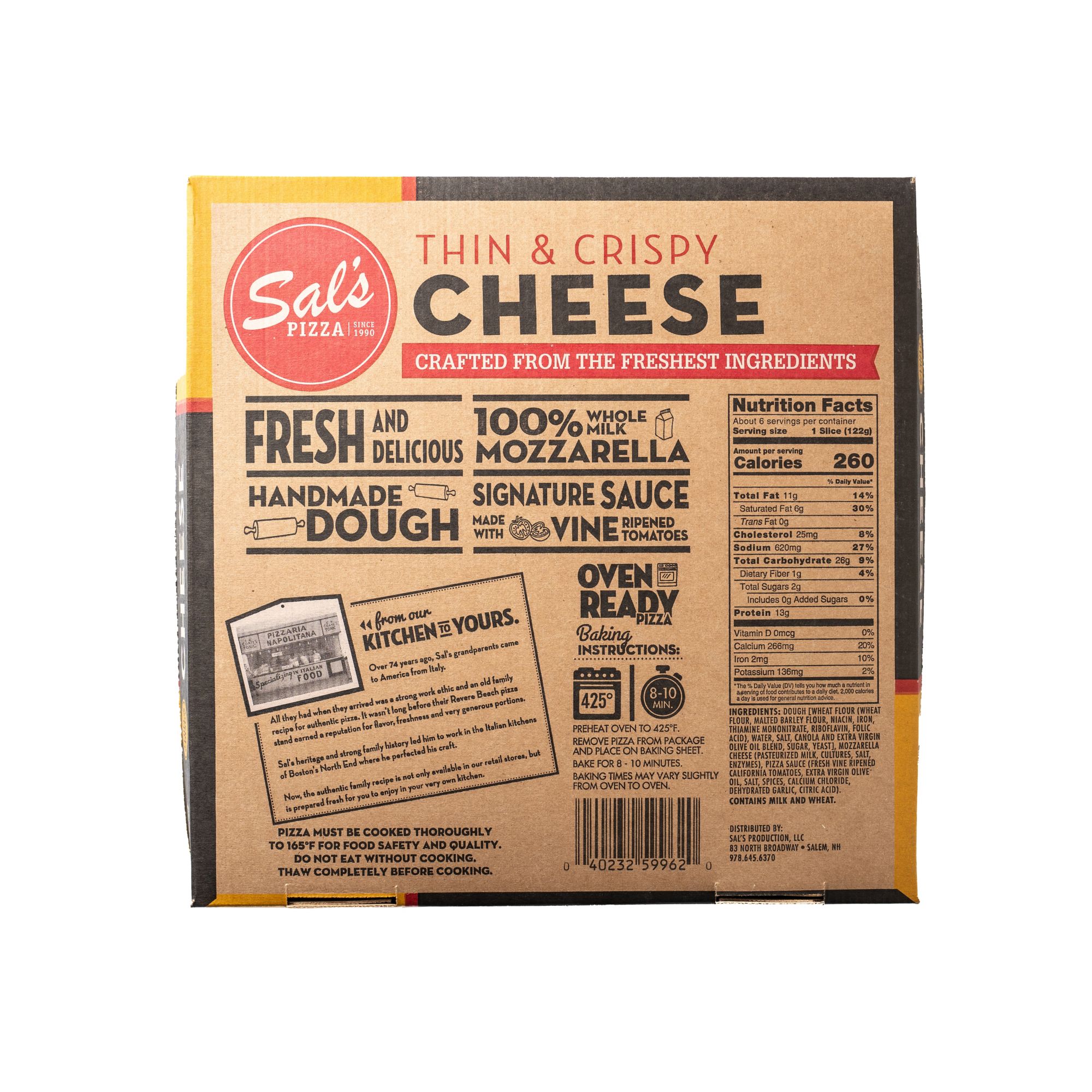 Ingredients:Dough[wheat Flour (Wheat Flour, Malted Barley Flour, Niacin, Iron, Thiamine Mononitrate, Riboblavin, Folic Acid), Water, Salt, Canola and Extra Virgin Olive Oil Blend, Sugar, Yeast], Mozzarella Cheese (Pasteurized Milk, Cultures, Salt, Enzymes), Pizza Sauce (Fresh Vine Ripened California Tomatoes, Extra Virgin Olive Oil, Salt, Spices, Calcium Chloride, Dehydrated Garlic, Citric Acid). Contains Milk and Wheat.