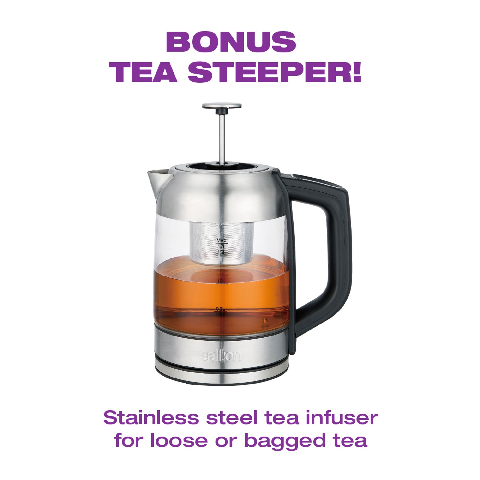 Salton 1.8 Qt. Temperature Control Kettle & Tea Steeper - Stainless Steel
