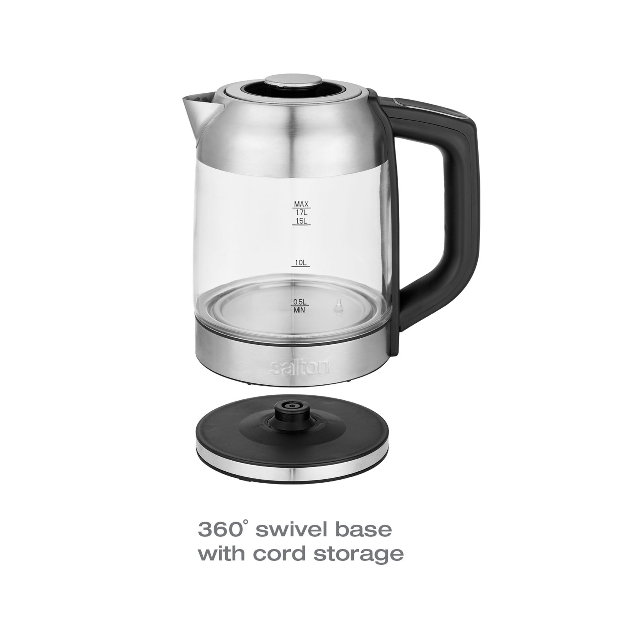 Elegant. Stylish. Sleek. This Salton kettle can be used to boil water and steep your favorite tea at the exact temperature required. The 7 pre-set temperatures adapt to a variety of teas; from oolong to chai, herbal to black. The 360 degree swivel base with cord storage allows you the convenience of cord-free serving and a clutter-free counter. The LED lights change as the temperature rises to indicate the temperature of water the kettle has reached. The perfect cup of tea is at the press of a button!
