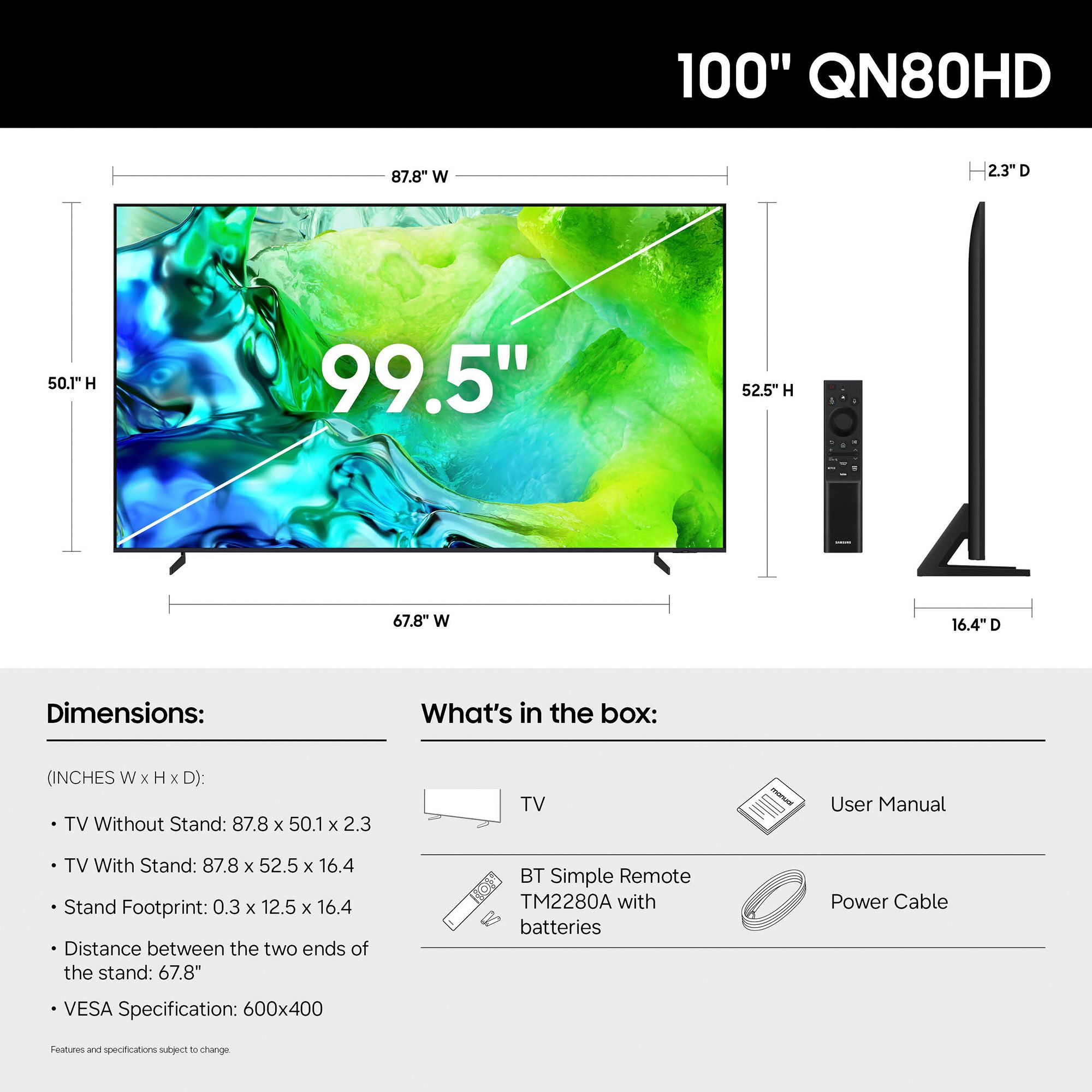 Samsung 100" QN80HD Neo QLED Mini LED 4K UHD Vision AI Smart TV with 5-Year Coverage