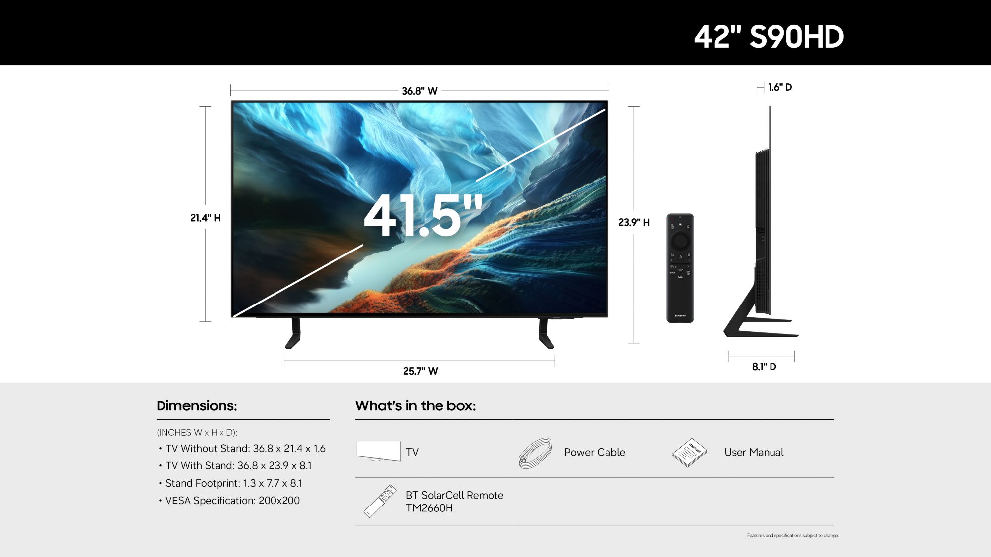 Samsung 42" S90HD OLED 4K UHD Vision AI Smart TV with 5-Year Coverage