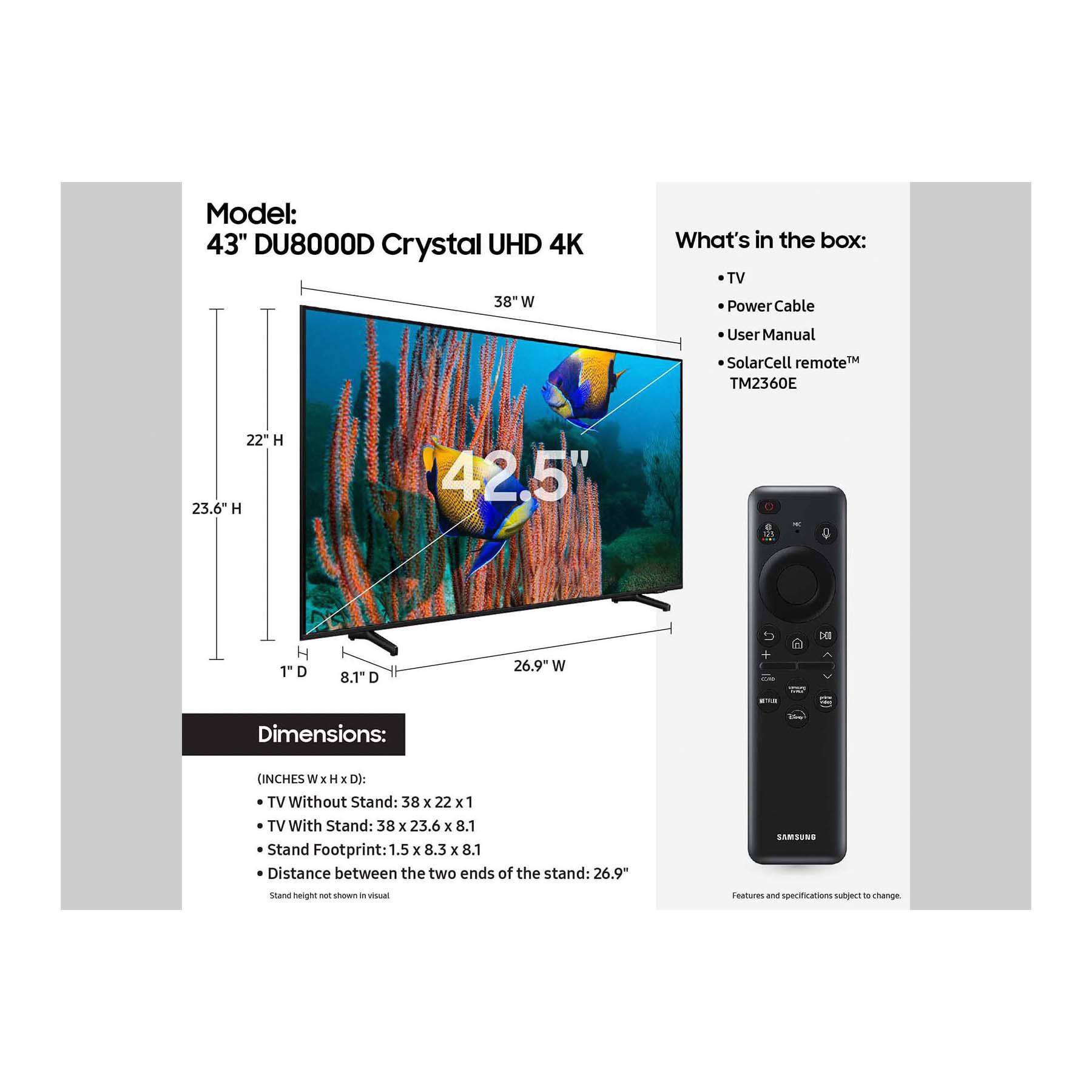 Samsung 43" DU8000D Crystal UHD 4K Smart TV with 4-Year Coverage