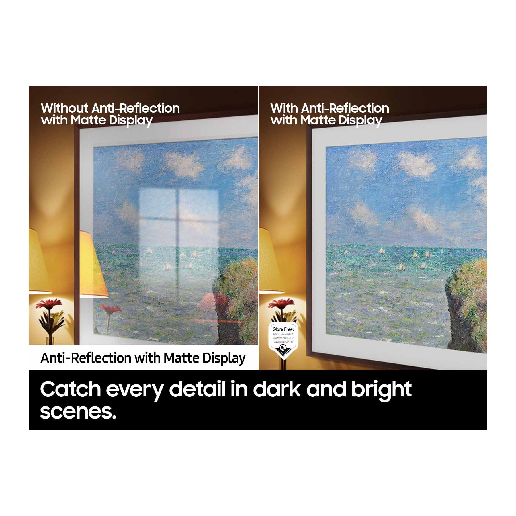 Motion Sensor and Brightness Sensor: Your art instantly turns on with movement in the room and adjusts the brightness of the TV to help maximize energy efficiency