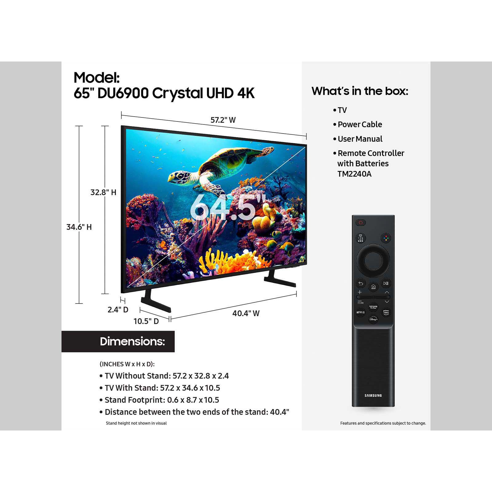 Samsung 65" DU6900D Crystal UHD 4K Smart TV with 4-Year Coverage