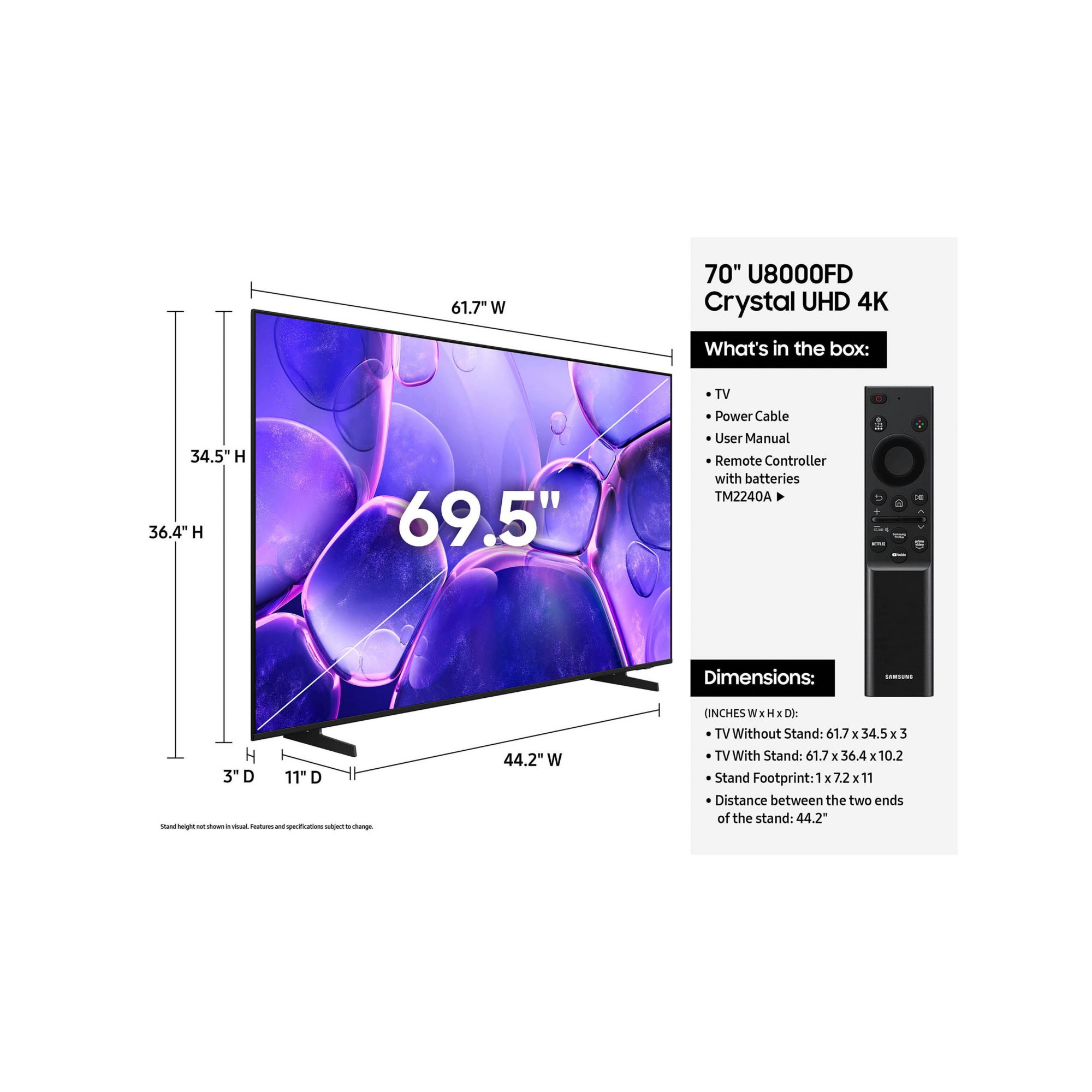 Samsung 70" U8000FD Crystal UHD 4K Smart TV with 4-Year Coverage