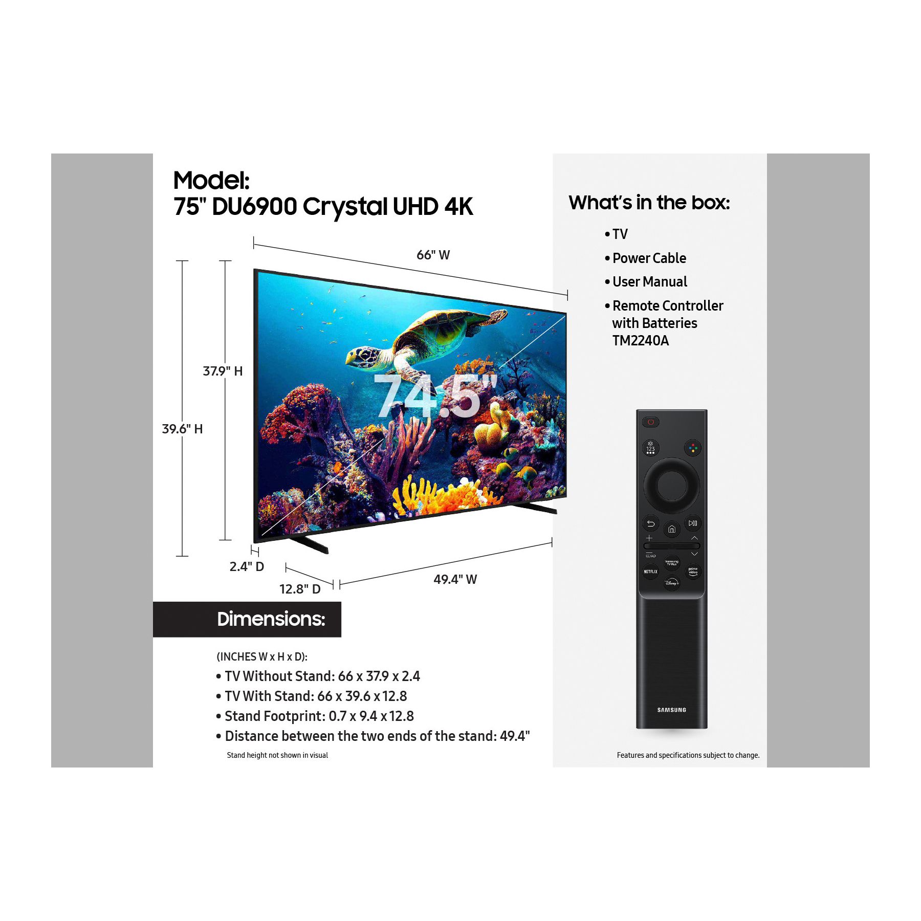 Samsung 75" DU6900D Crystal UHD 4K Smart TV with 2-Year Coverage