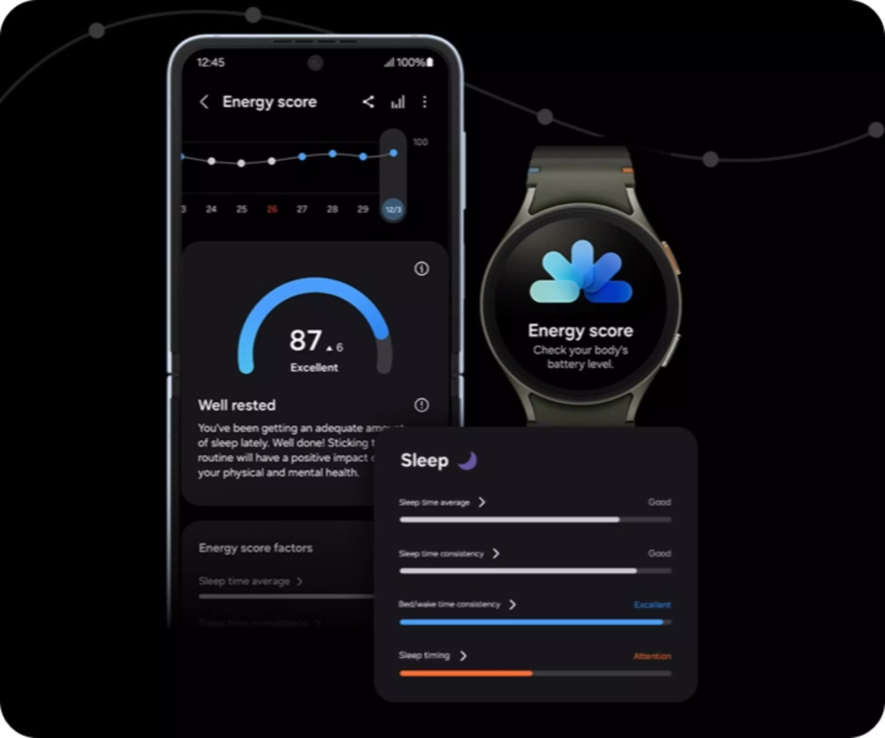 1 Galaxy AI features track data and require compatible Samsung Galaxy phone, Samsung Health app and Samsung account.