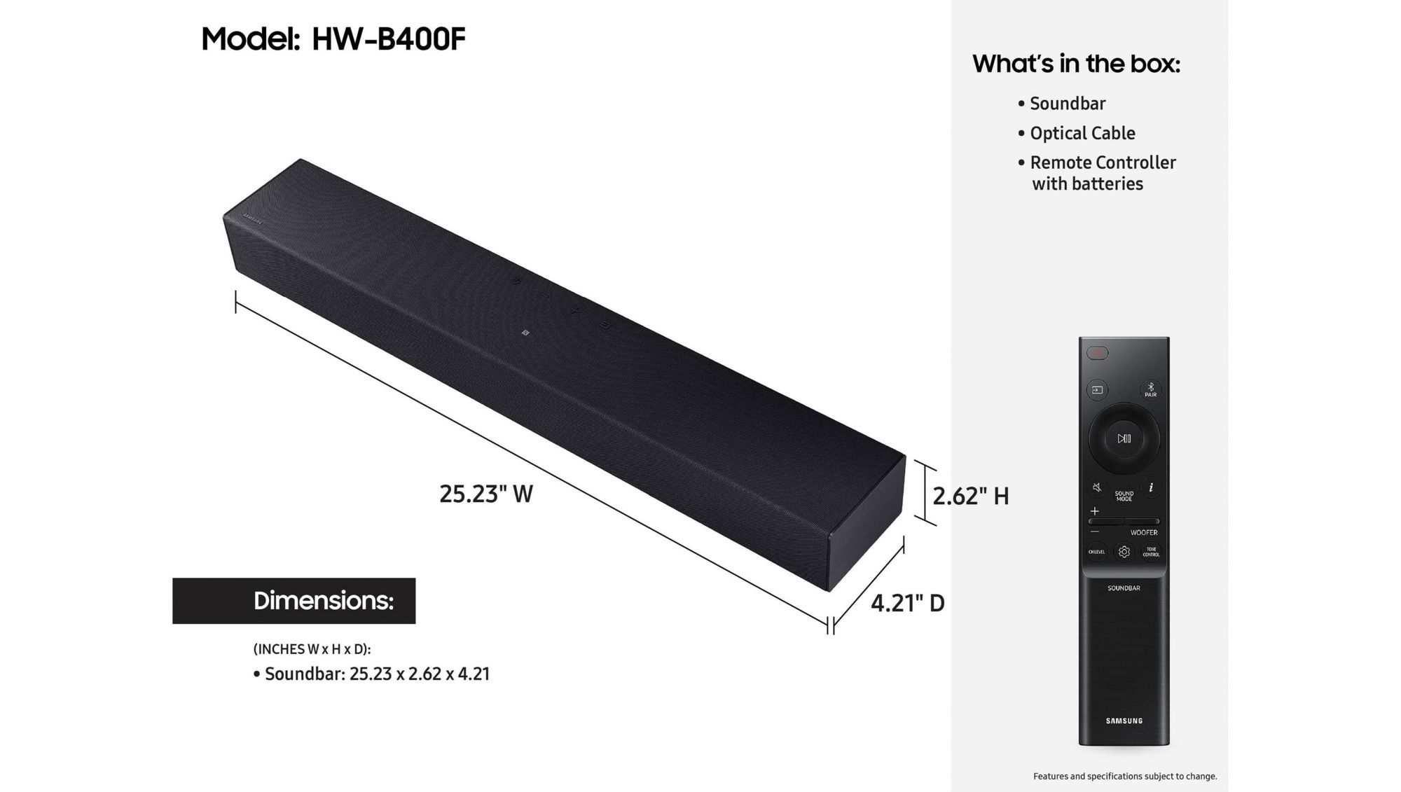 Special Offer Available: Purchase Samsung HW-B400F 2.0 Channel Soundbar and receive $10 BJ's Gift Card. $10 Gift Card will automatically be added in cart.. Expires: 02/09/2026