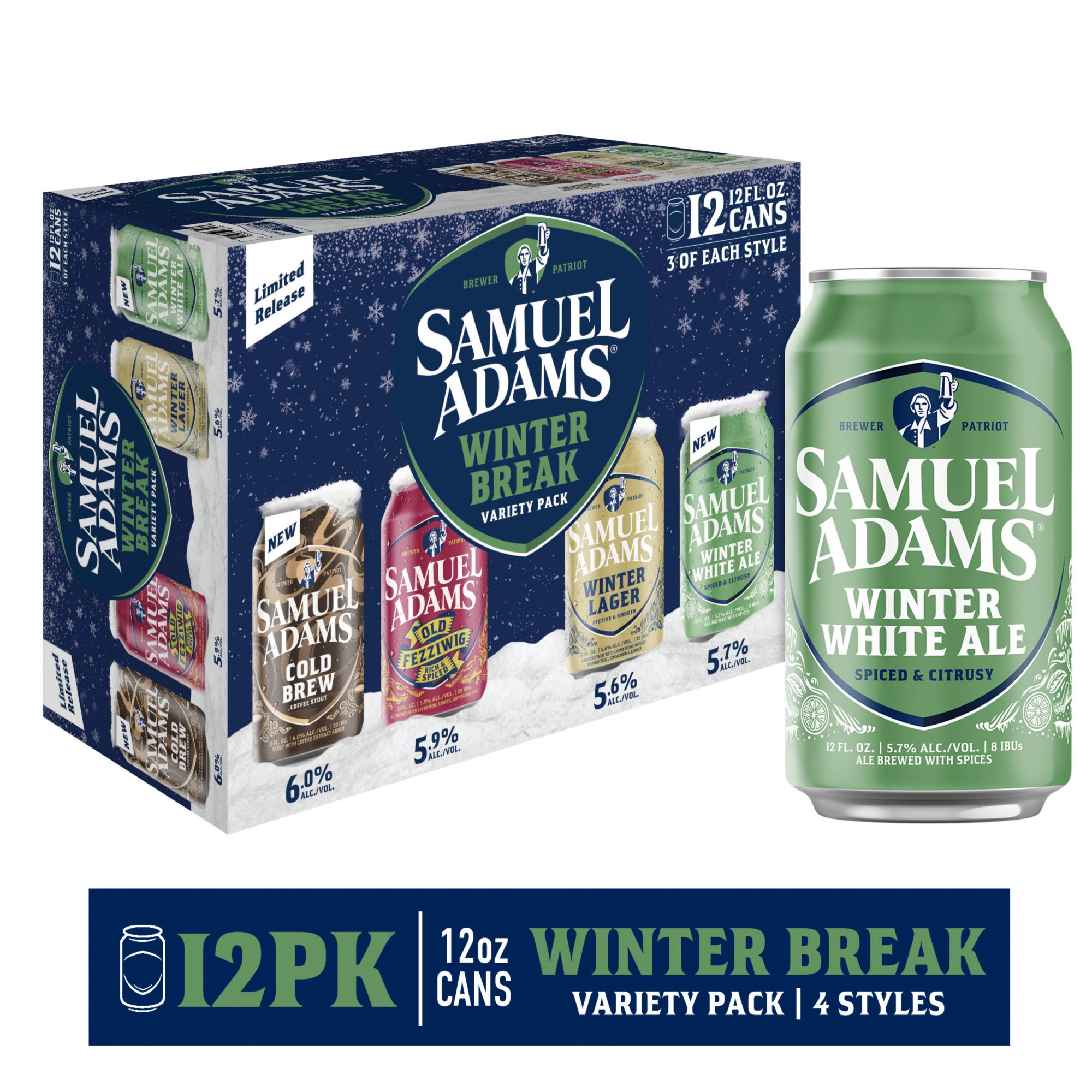 Samuel Adams Winter Break Seasonal Variety Beer, Cans, 12 pk./12 fl. oz.