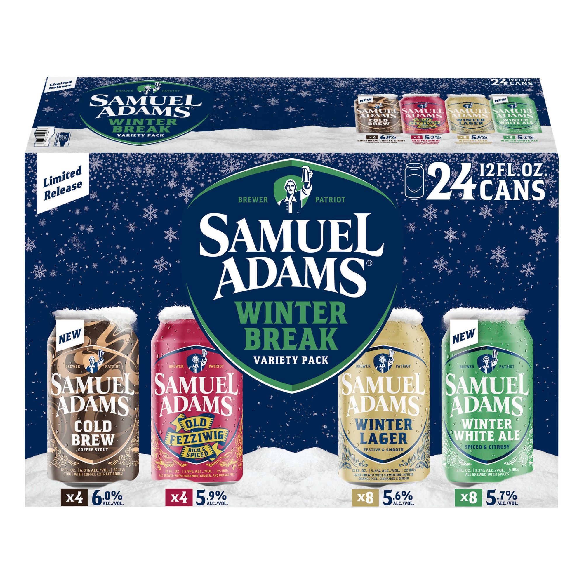 Samuel Adams Winter Break Seasonal Variety Beer, Cans, 24 pk./12 fl. oz.