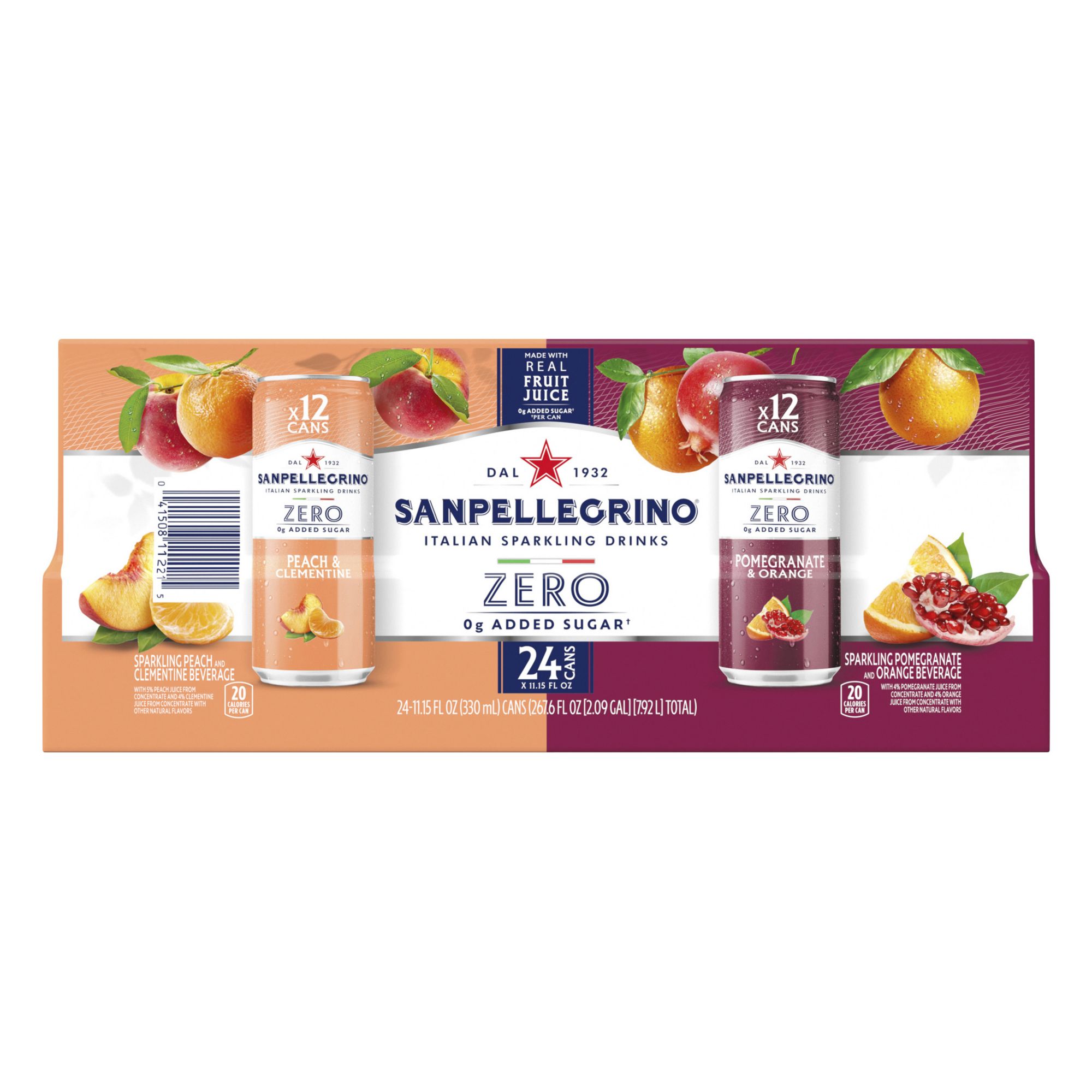 Enjoy every sparkling moment with San Pellegrino Zero Peach/Clementine & Pomegranate/Orange Sparkling Drinks. San Pellegrino Peach/Clementine & Pomegranate/Orange flavored sparkling beverage made with juice to add a refreshing alternative to traditional seltzer water, flavored sparkling waters or carbonated soft drinks. With deliciously sweet tartness, this flavored sparkling beverage is made with no artificial sweeteners. Smooth on the palate, San Pellegrino Peach/Clementine & Pomegranate/Orange is a delicately balanced drink with fresh and tart notes, with the perfect sweet touch to end. Enjoy San Pellegrino Peach/Clementine & Pomegranate/Orange as a refreshing sparkling drink, a tasty mid-afternoon treat, or while you unwind at the end of the day. San Pellegrino Peach/Clementine & Pomegranate/Orange flavored sparkling beverage made with real clementine juice concentrate, peach juice concentrate and other natural flavors to add a refreshing alternative to traditional seltzer water, flavored sparkling water or carbonated soft drinks. Whatever the occasion, take the time for taste with San Pellegrino Italian sparkling drinks.