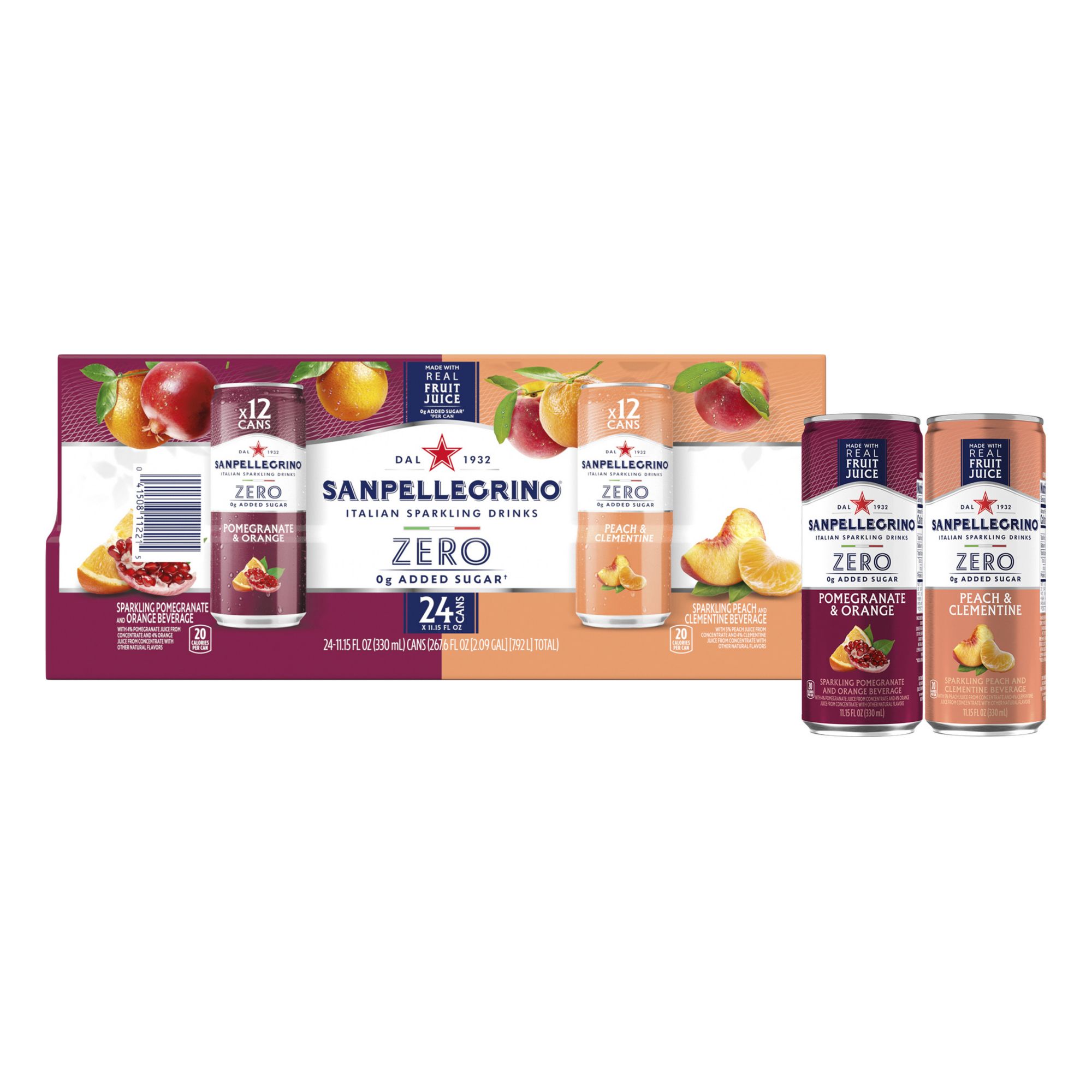San Pellegrino Zero, Peach/Clementine & Pomegranate/Orange Sparkling Drinks, 24 pk./300 ml