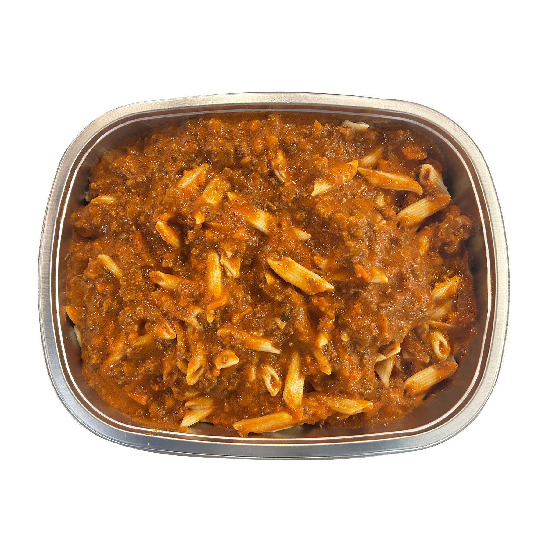 Ingredients: Penne Pasta: Cooked Enriched Macaroni Product (Water, Semolina [Wheat], Enriched With Niacin, Ferrous Sulfate, Thiamin Mononitrate, Riboflavin, Folic Acid), Soybean Oil, Contains Less Than 2% Of Salt. Bolognese Sauce: Cooked Ground Beef, Water, Tomato Paste (Tomatoes, Citric Acid), Onions, Cooked Ground Pork, Carrots, Celery, Burgundy Wine (Red Wine, Salt), Contains Less Than 2% Of Whipping Cream, Garlic, Pork Base (Pork Meat Including Natural Pork Juices, Sea Salt, Pork Fat, Natural Flavoring), Beef Base (Roasted Beef And Beef Stock, Salt, Sugar, Malt Extract, Tomato Paste, Flavors, Soy Sauce (Water, Soybeans, Wheat, Salt), Less Than 2% Of Sunflower Oil, Corn Oil, Beef Fat, Potato Starch), Beef Fat, Oil Blend (Canola Oil, Extra Virgin Olive Oil), Brown Stock (Veal Stock [Veal Bones, Water], Beef Stock, Mirepoix Stock [Carrot, Celery And Onion Stocks], Red Wine, Tomato Paste, Gelatin, Salt, Carrot Stock, Celery Stock), Spices, Salt, Granulated Garlic.