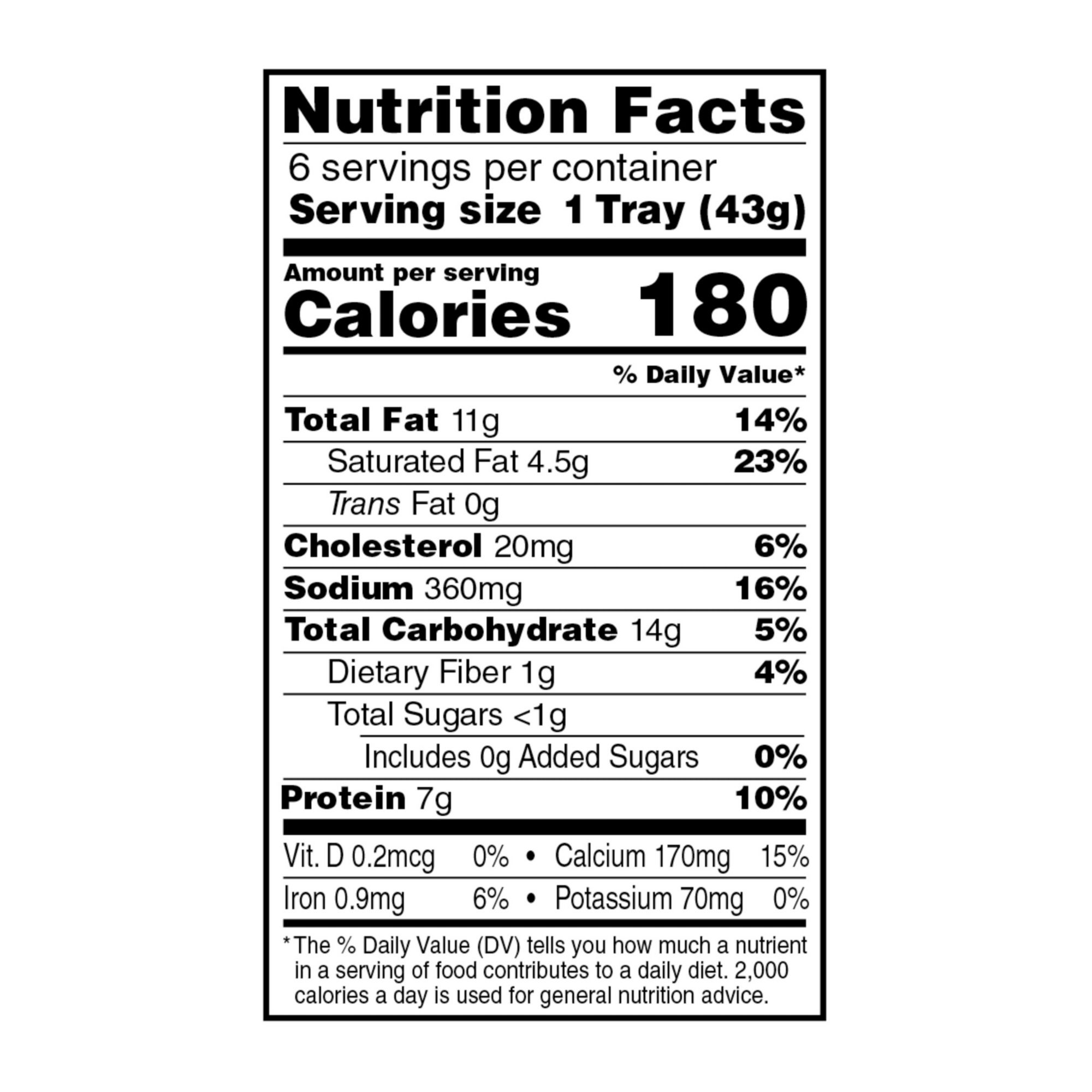 Ingredients: Monterey Jack Cheese (Pasteurized Milk, Cheese Culture, Salt, Enzymes), Pretzels [Enriched Wheat Flour (Wheat Flour, Niacin, Reduced Iron, Thiamine Mononitrate, Riboflavin, Folic Acid), Malt, Salt, Soybean Oil], Sea-Salted Roasted Cashews [Cashews, Vegetable Oil (Peanut and/or Sunflower Seed), Sea Salt], Bread Slices [Enriched Wheat Flour (Wheat Flour, Niacin, Reduced Iron, Thiamine Mononitrate, Riboflavin, Folic Acid), Vegetable Oil (Canola Oil, Soybean Oil, and/or Sunflower Oil), Yeast, Salt, Sugar, Malt Powder (Malted Barley Flour, Dextrose, Wheat Flour), Wheat Gluten, Sodium Bicarbonate], Corn Sticks [Corn Masa Flour (White Corn Flour, Lime), Vegetable Oil (Peanut, Safflower and/or Sunflower, Potato Flour, Sea Salt], Pita Chips (Wheat Flour, Whole Wheat Flour, Sugar, Salt, Oat Fiber, Sunflower Oil, Yeast), Soybean Oil, Seasoning [Buttermilk Solids, Maltodextrin, Salt, Garlic Powder, Sugar, Aged Red Cayenne Peppers, Distilled Vinegar, Natural Flavors, Lactic Acid, Citric Acid, Onion Powder, Parsley, Spices, Extractives Of Paprika (Color), Whole Milk Powder, Cultured Buttermilk], Potato Starch (To Prevent Caking), Powdered Cellulose (To Prevent Caking), Natamycin (A Natural Mold Inhibitor).