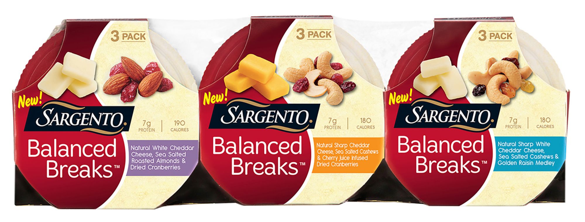 With mouthwatering cheese, nuts and dried fruits in each and every serving, the Sargento Balanced Breaks Snack Trays offer a versatile treat that's effortlessly enjoyed alone or alongside a tasty lunch. Each tray delivers 7g of protein and contains less than 200 calories.