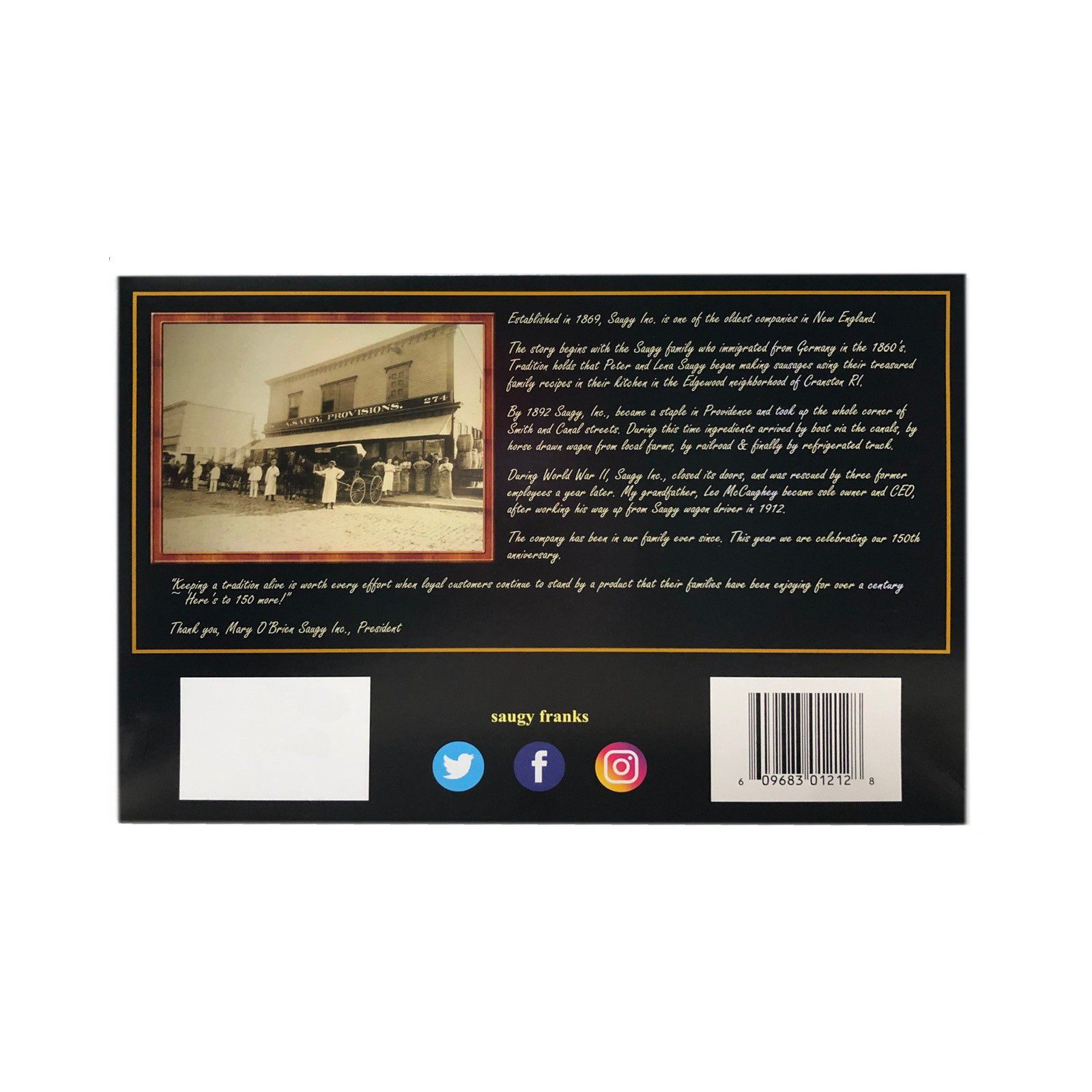 A New England classic and staple for the summertime for over 150 years, these hotdogs are sure to be a favorite. Each hotdog is made of a blend of beef and pork, mildly spiced for a savory flavor, then smoked to perfection. The outside casing for each is natural sheep casing for a satisfying snap. No byproducts or additional fillers are included in this locally made frank. Great for outdoor grilling or comfort food all year long.