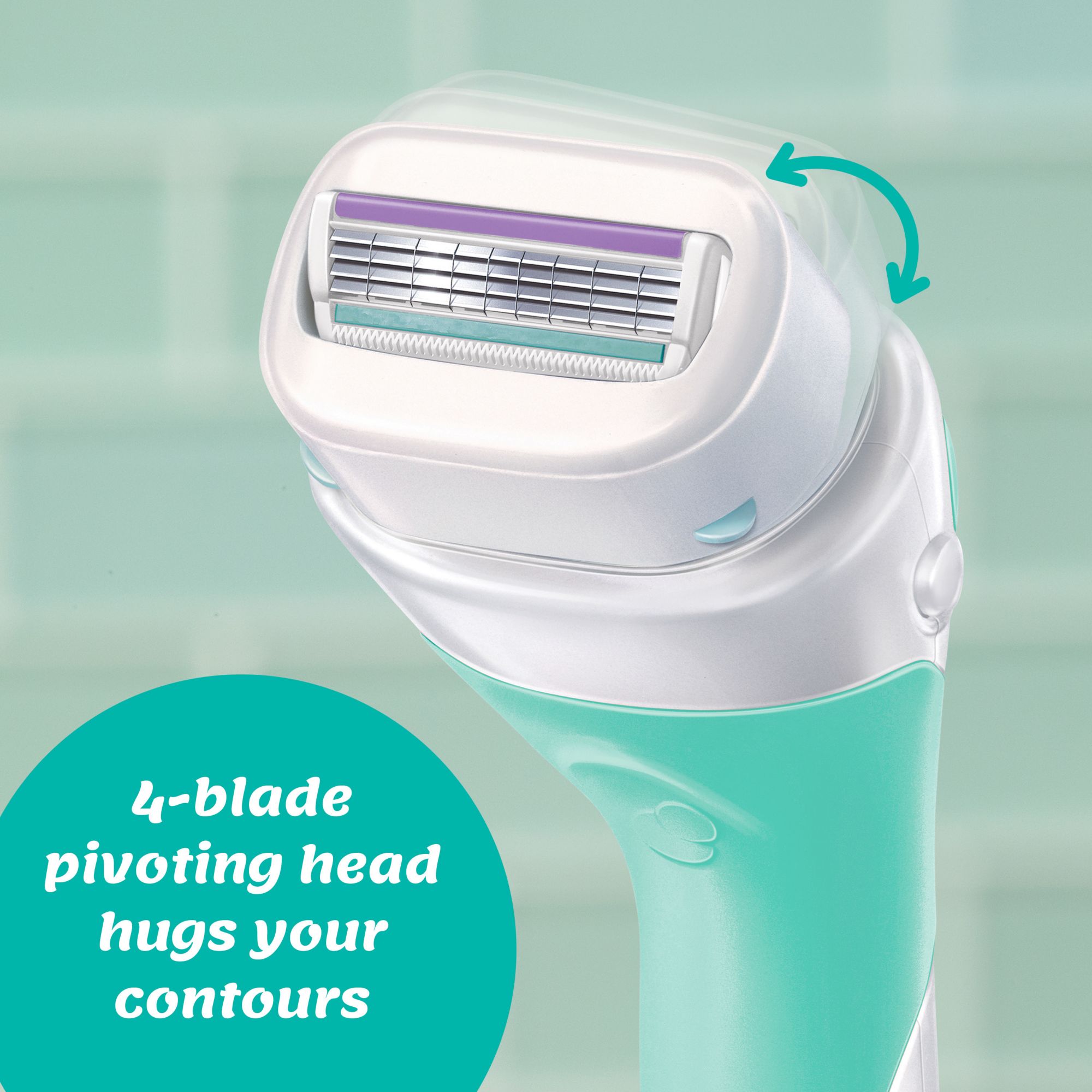 Pivoting head follows the contours of a woman's body to help minimize irritation