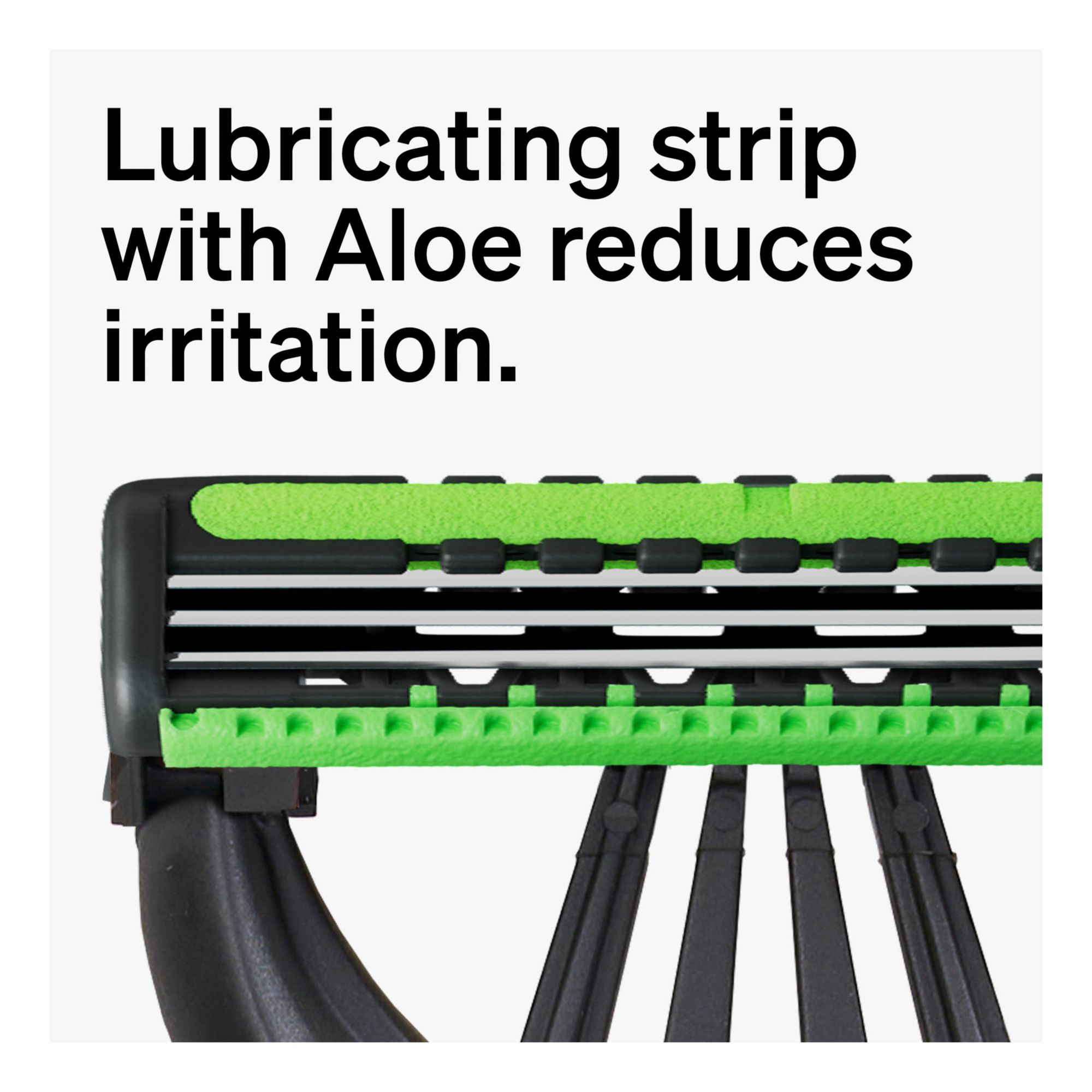 Triple-blade design flexes and pivots to adapt to the contours of your face so you'll get a close shave Easy rinse design helps keep blades from clogging Lubricating comfort strip on cartridge formulated with aloe helps protect skin against irritation Ideal for sensitive skin Ergonomic handle for a steady grip Disposable for easy portability Includes 20 razors