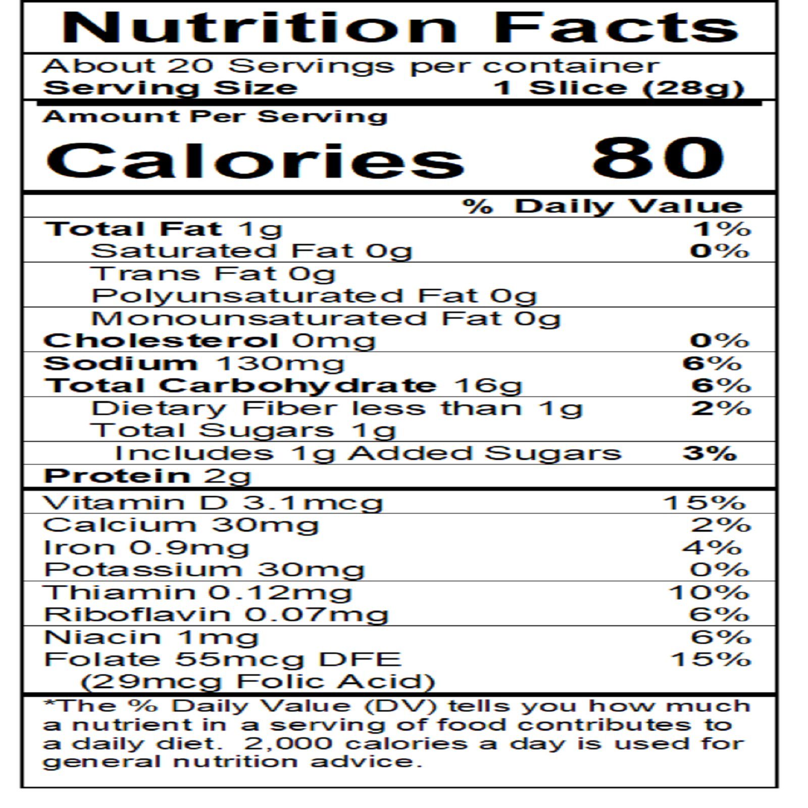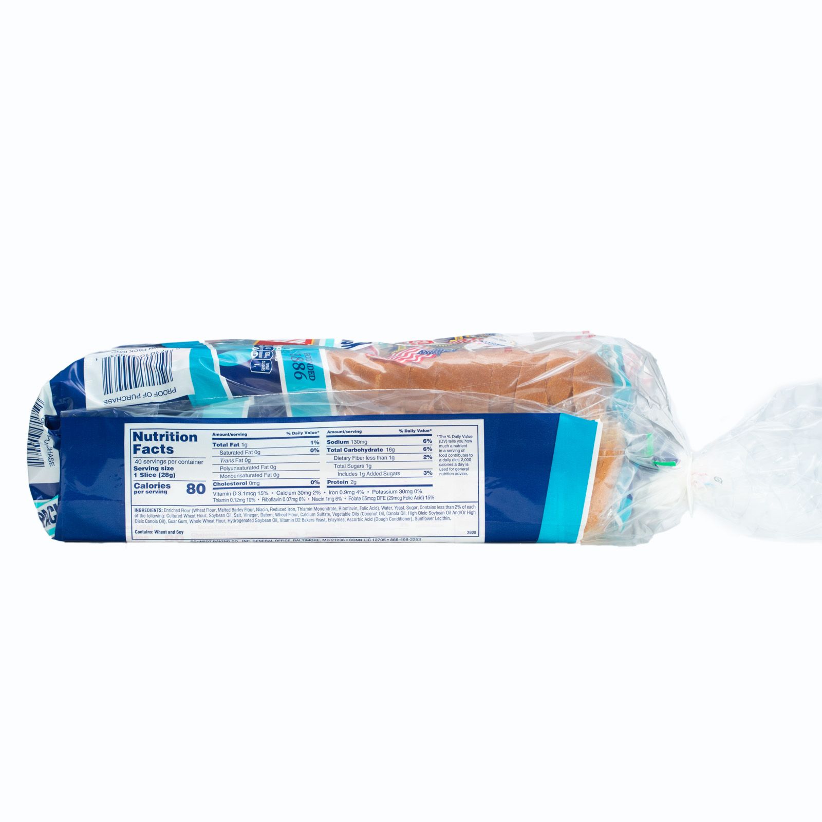 Locally baked No fructose corn syrup Low sodium Guaranteed freshness Includes 20-oz. enriched white bread