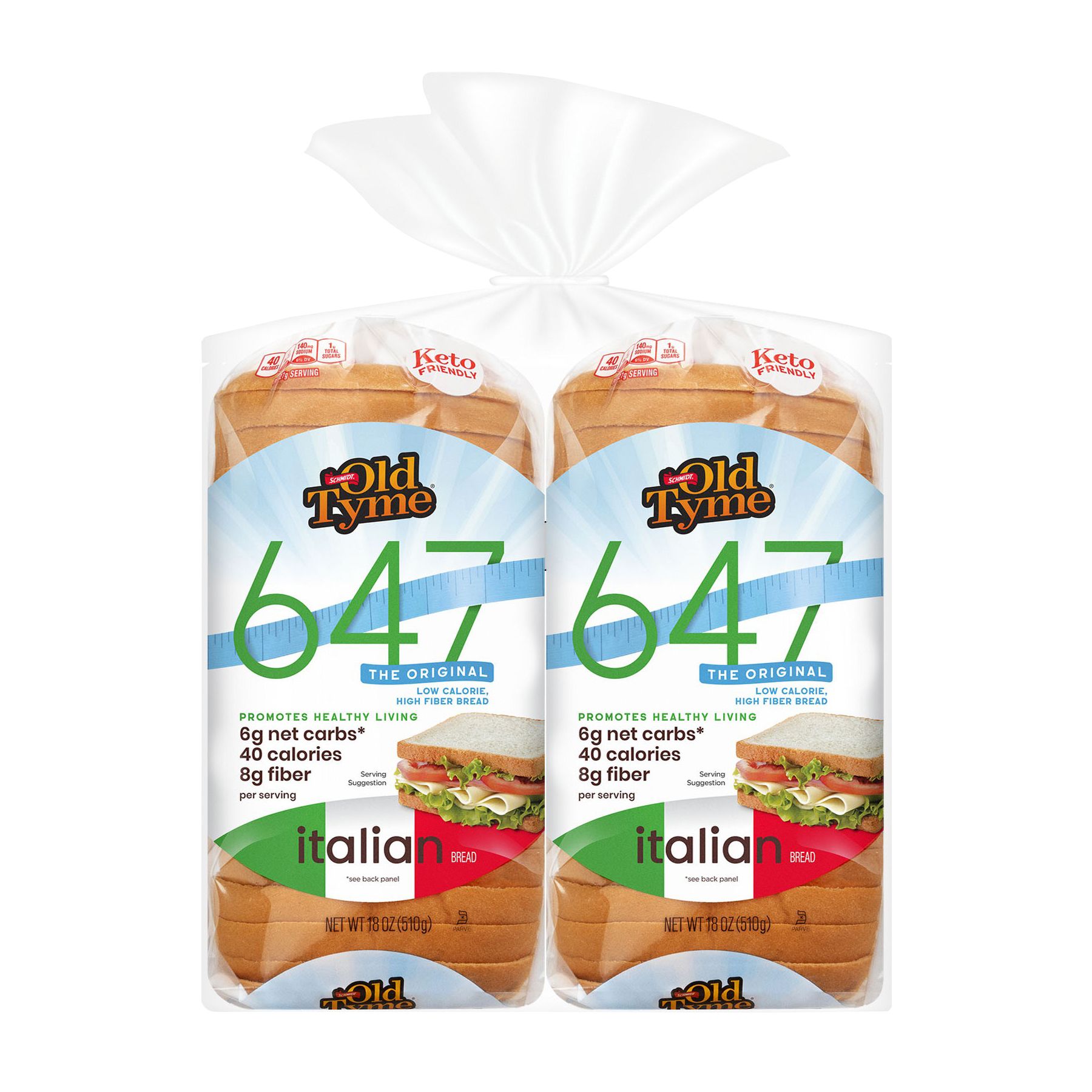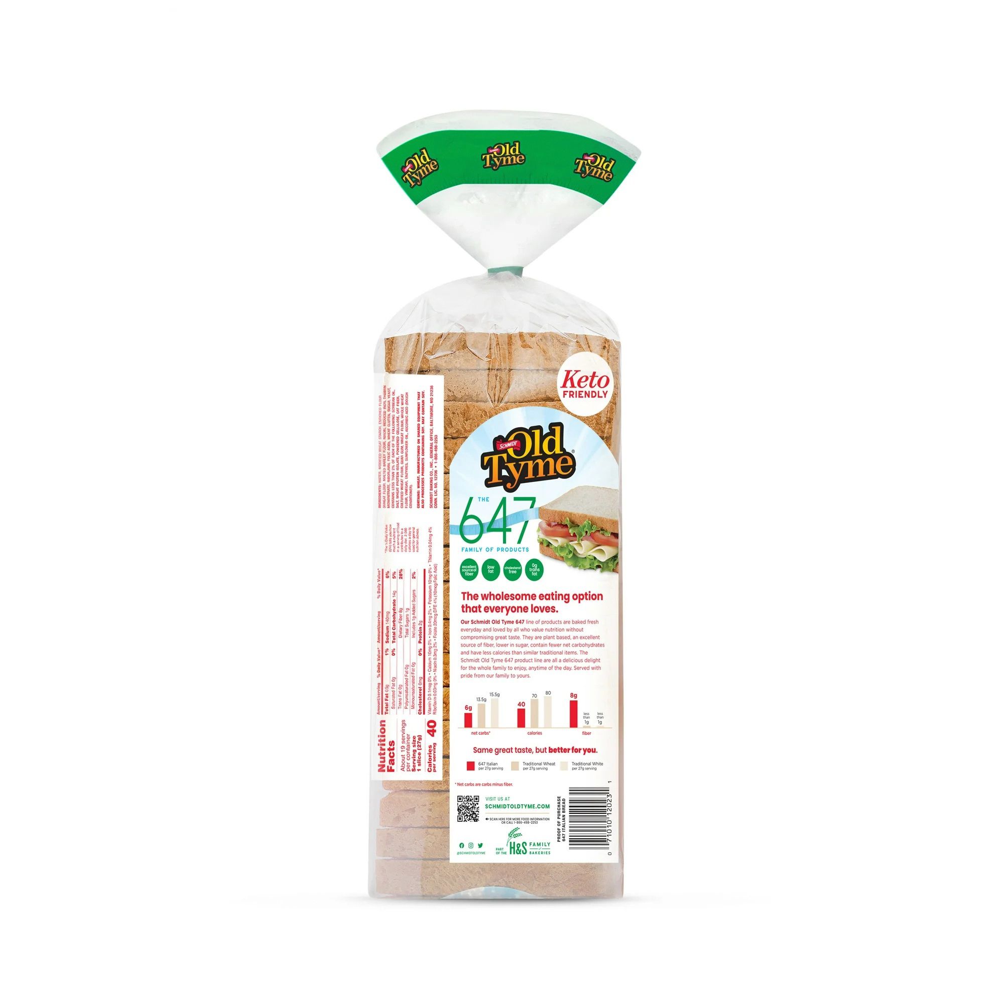 Schmidt Old Tyme 647 Italian Bread is the perfect choice for anyone looking for a low‑calorie bread with the authentic taste of classic Italian bread. Each slice has only 40 calories, 6g net carbs, and 8g fiber, making it a keto‑friendly bread option that supports low‑carb diets and healthy lifestyles. Baked fresh with enriched flour, wheat gluten, oat fiber, and whole wheat flour, this high‑fiber bread is free from artificial preservatives, colors, flavors, and high fructose corn syrup. With its soft texture and mild flavor, Schmidt 647 Italian Bread is ideal for sandwiches, toast, garlic bread, or pairing with soups and pasta. Customers love it for its balance of taste and nutrition, offering a smarter alternative to traditional bread without sacrificing flavor. Schmidt Old Tyme 647 Italian Bread is the go‑to choice for those seeking healthy bread options that fit seamlessly into everyday meals.