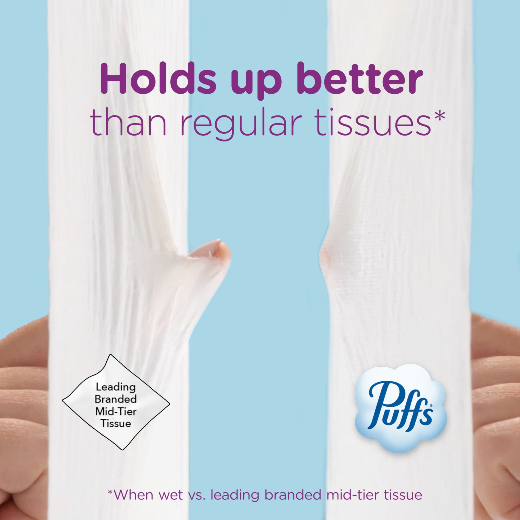 Keep the cushiony softness of Puffs Ultra Soft around to ease your sniffles and sneezes. Puffs cushions your nose from ordinary tissues so you can skip any sore, red nose issues. Puffs Ultra Soft is our strongest non-lotion tissue and is stronger when wet vs. leading branded mid-tier tissue. Puffs Ultra Soft is gentle and has the softness and strength your delicate nose needs, all year round. A nose in need deserves Puffs indeed!