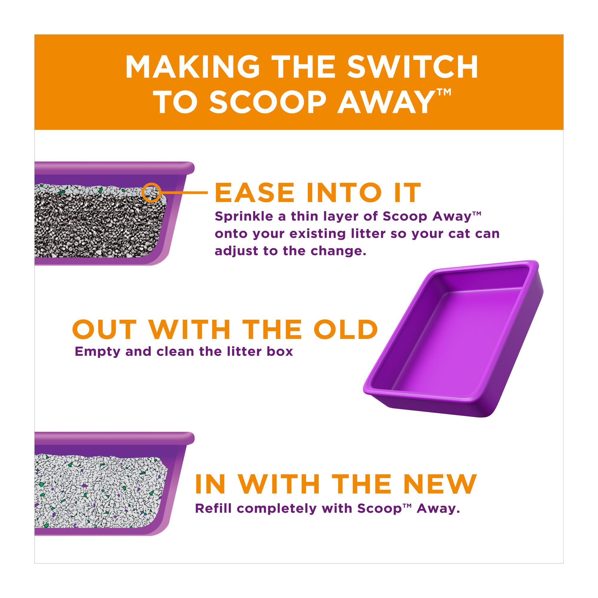 Instructions for Use:Fill litter box with 3-4" of litter. Scoop out clumps and solids daily and dispose of them in the trash. Add more litter as needed.