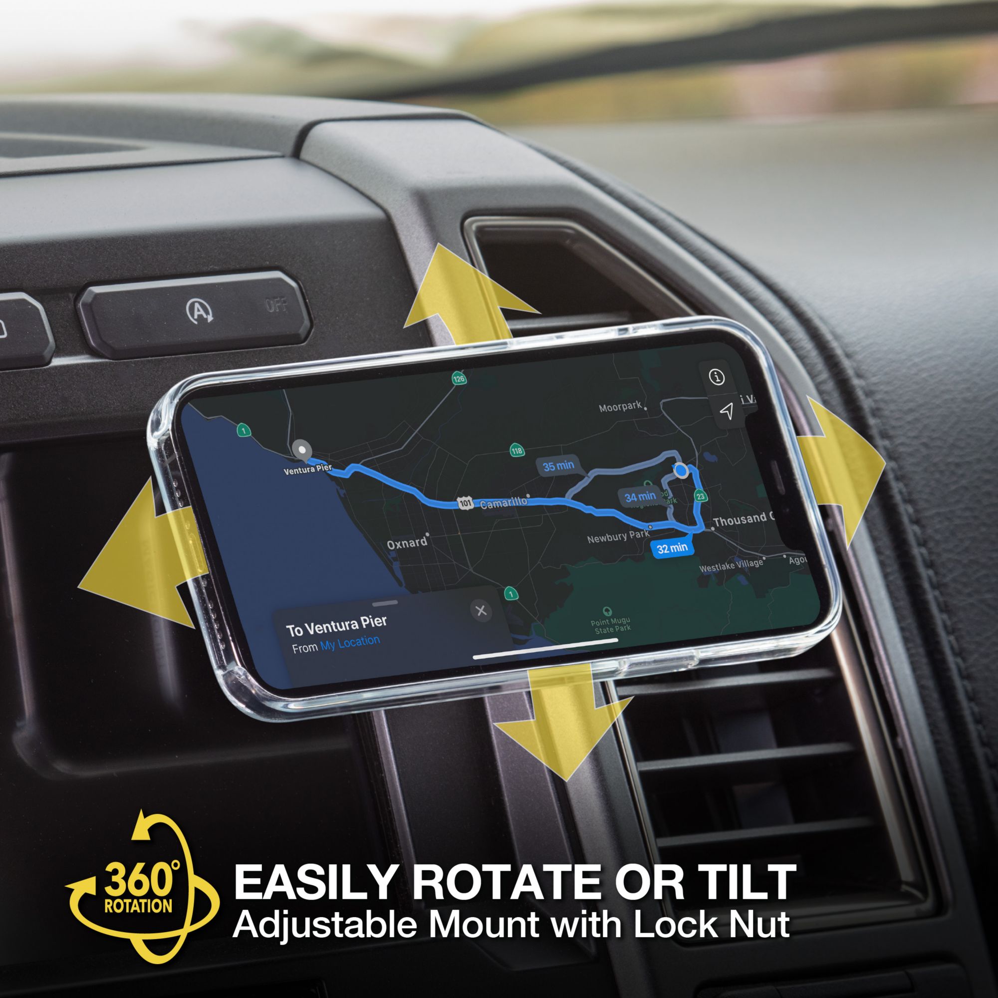 Rotate the 360-degree adjustable car phone holder head for an optimal view from almost any angle