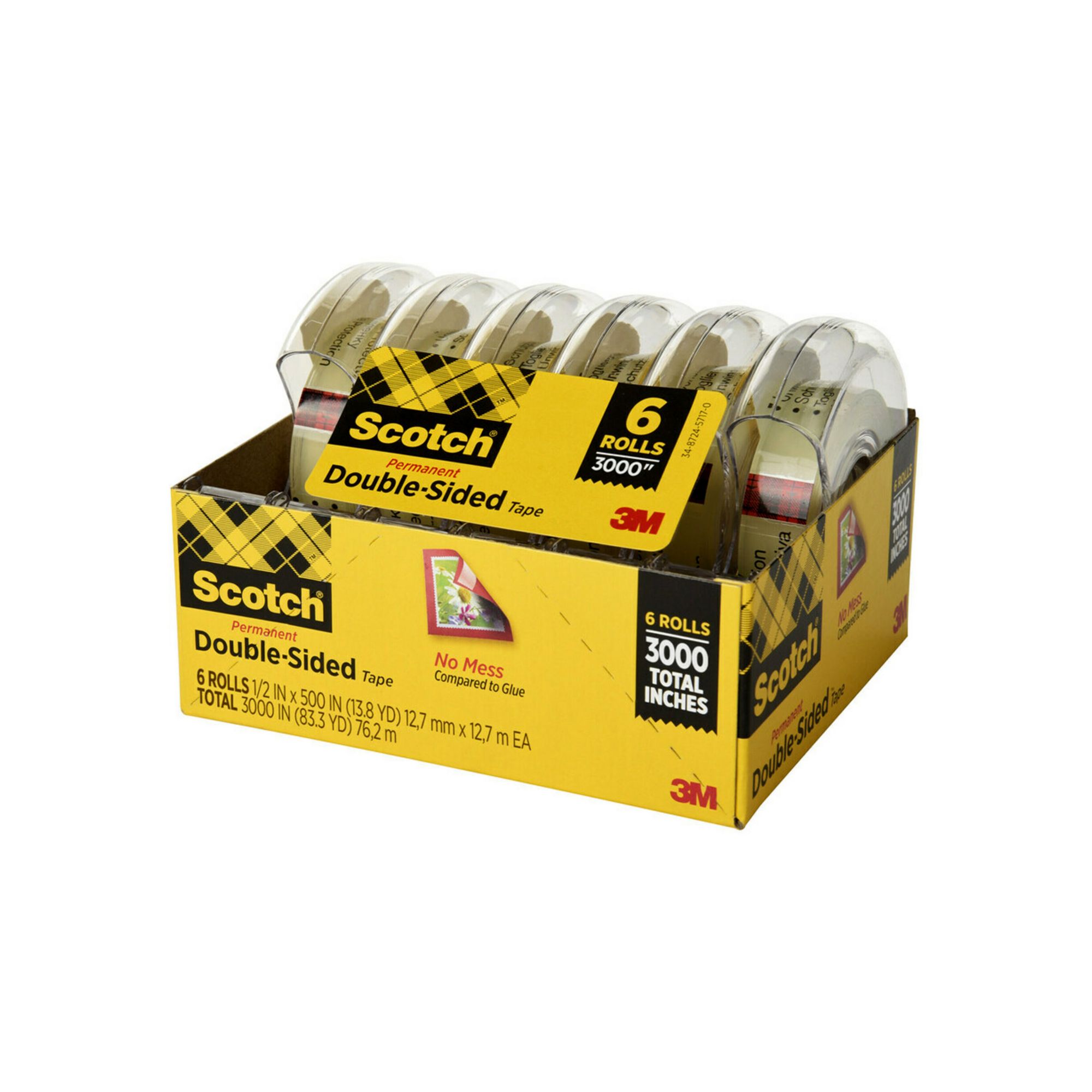 Scotch Double Sided Tape 6 Rolls 1/2" x 500" per roll