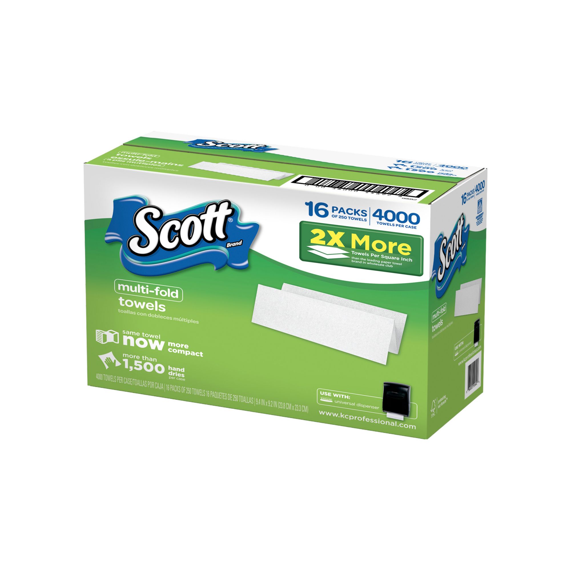 When your small business’ restroom or kitchen needs commercial paper towels, Scott 100% Recycled Fiber Multifold Paper Towels are an economical choice. They are made with 100% recycled fiber (RF), so you can feel good about choosing them. Plus, they fit into any universal dispenser for c-fold paper towels or multifold towels (which helps control overuse), and they are folded for one-at-a-time dispensing. Made with a minimum of 40% post-consumer waste, Scott folded paper towels meet EPA minimum standards and are FSC and Eco Logo certified, you know they’re good choice for an economical paper towel. With Scott Brand products, you get the quality and performance you can count on – and still stay within your budget. The packs of 250 towels each contain commercial paper towels with signature absorbency pockets that absorb a lot of water fast, for superior hand drying. Their trifold design also helps to reduce waste.
