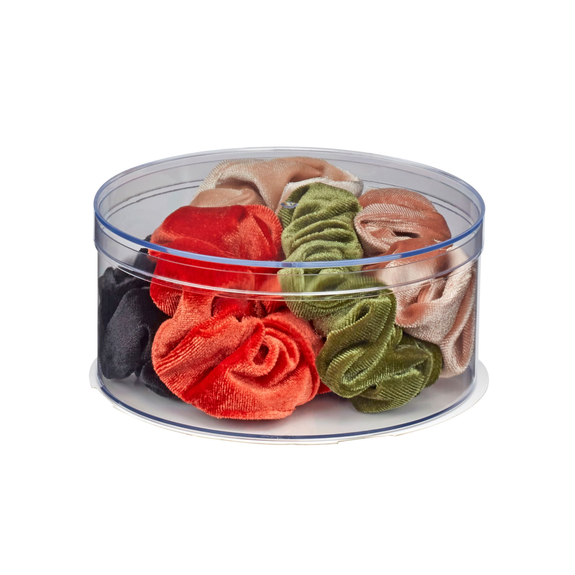 Five velvet scrunchies: luxurious feel with a firm hold for accenting ponytails and buns