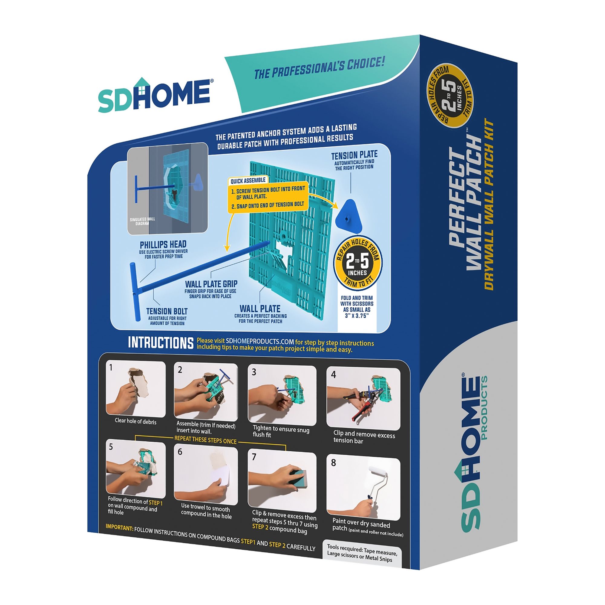 This drywall repair kit has all you need to patch holes like a professional. It comes with a wall plate that affixes to the back of the wall for a stable base, an easy-mixing compound and a double-sided sanding block. One plate is enough to fill a hole of up to five inches, and they can easily be combined to handle larger jobs. With this kit, your wall will look like it was never damaged in the first place.