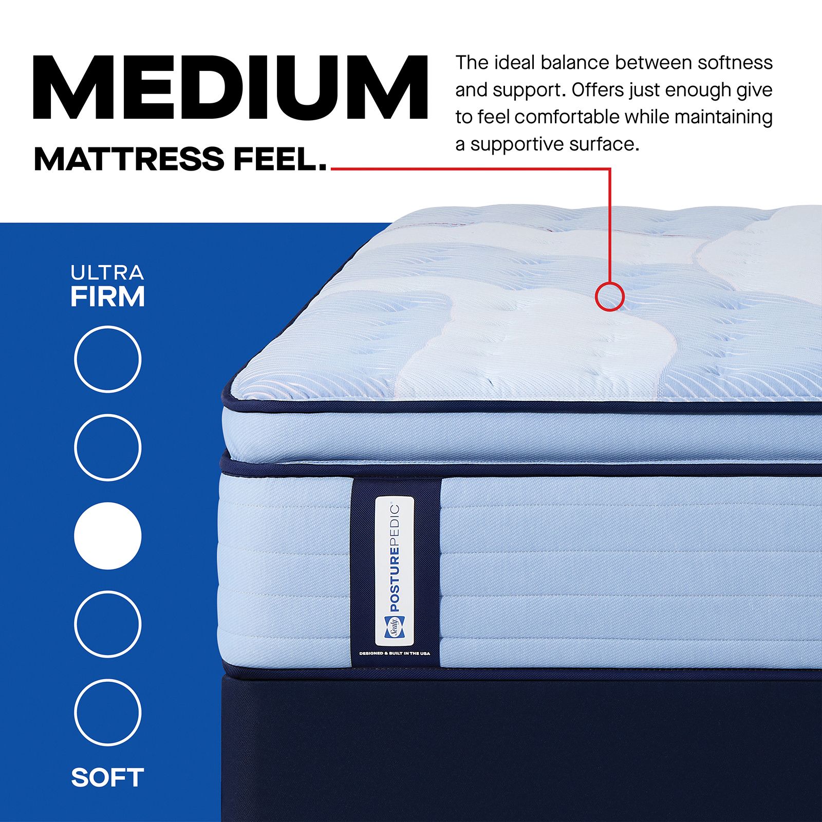 PrecisionFit Coils – Exclusive PrecisionFit Coils flex to your body’s individual needs to help maintain natural alignment and reduce nagging bed aches Coil Edge – The Coil Edge creates a solid seating surface that’s built to last Posturepedic® Support System – The Posturepedic® Support System features exclusive PrecisionFit Coils, arranged right where you need them to help maintain natural body alignment and reduce nagging bed aches Surface-Guard Technology – Surface- Guard Technology protects against common allergens, such as dust mite dander and mold, helping the cover stay fresh MoistureProtect Cover – The MoistureProtect Cover helps wick moisture away to help sleepers stay cool Designed And Built In The USA – Sealy products have been proudly designed, built, tested and enjoyed in the USA since 1881