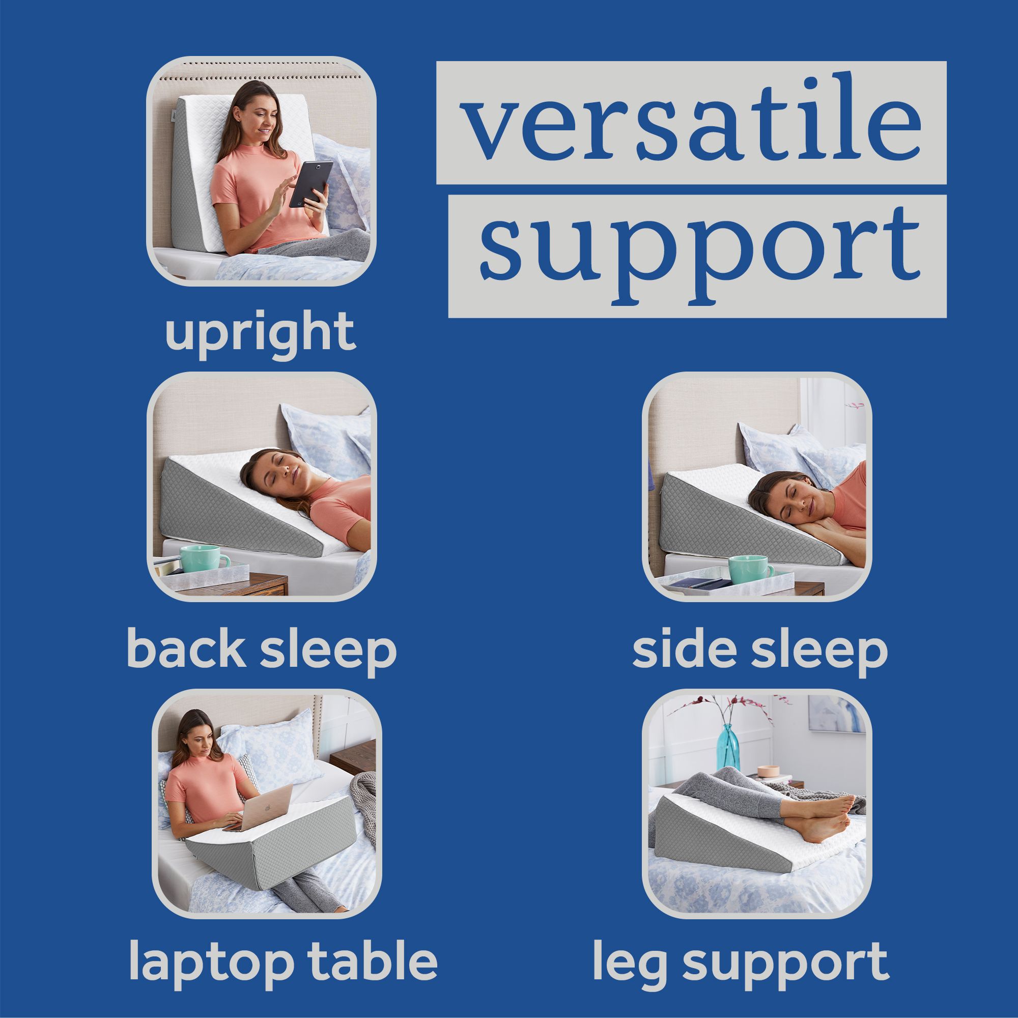 Elevate your lifestyle with the Sealy SealyChillGel Memory Foam Wedge Pillow, a pillow that provides versatile comfort while you work, lounge & sleep. Premium memory foam provides adaptive comfort and support and is topped with a layer of SealyChillGel-infused memory foam for added comfort. Wedge shape creates an incline providing variable support options for your head, back, legs and so much more. The options are endless.