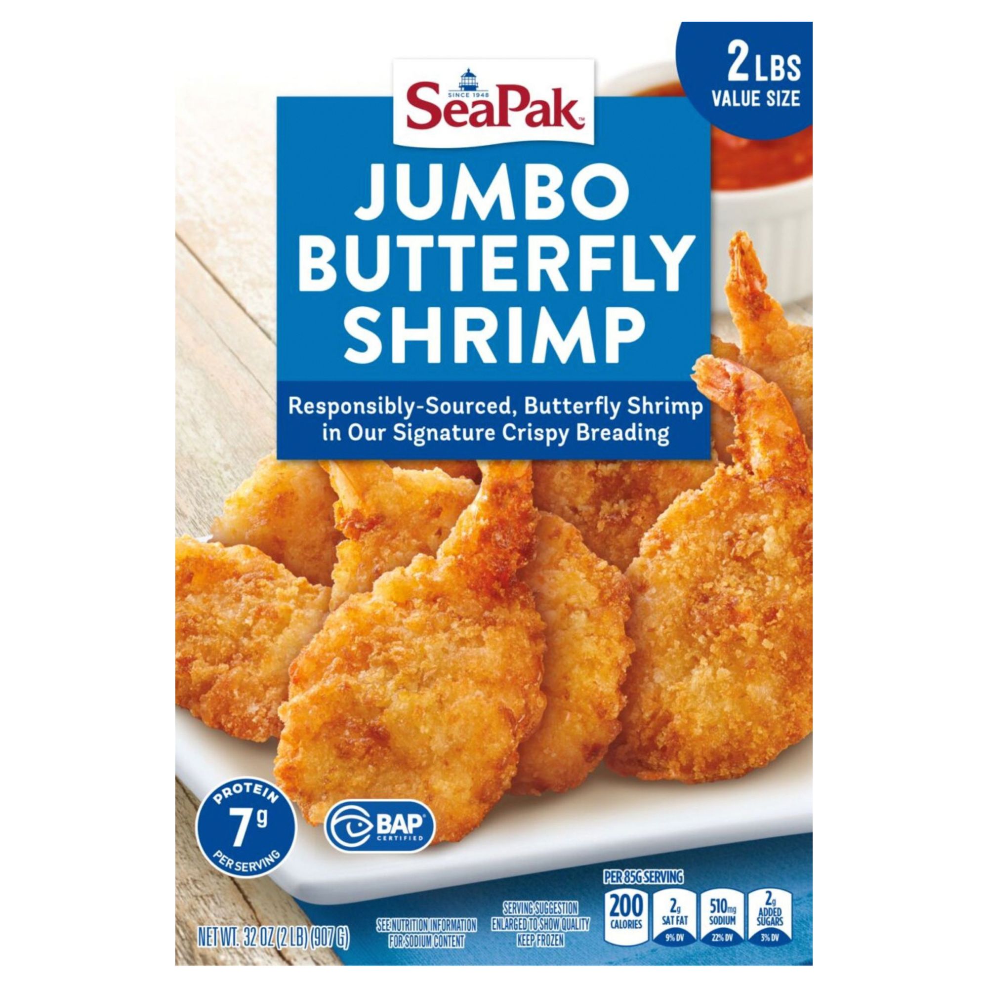 Includes jumbo butterfly shrimp, 2 lbs.