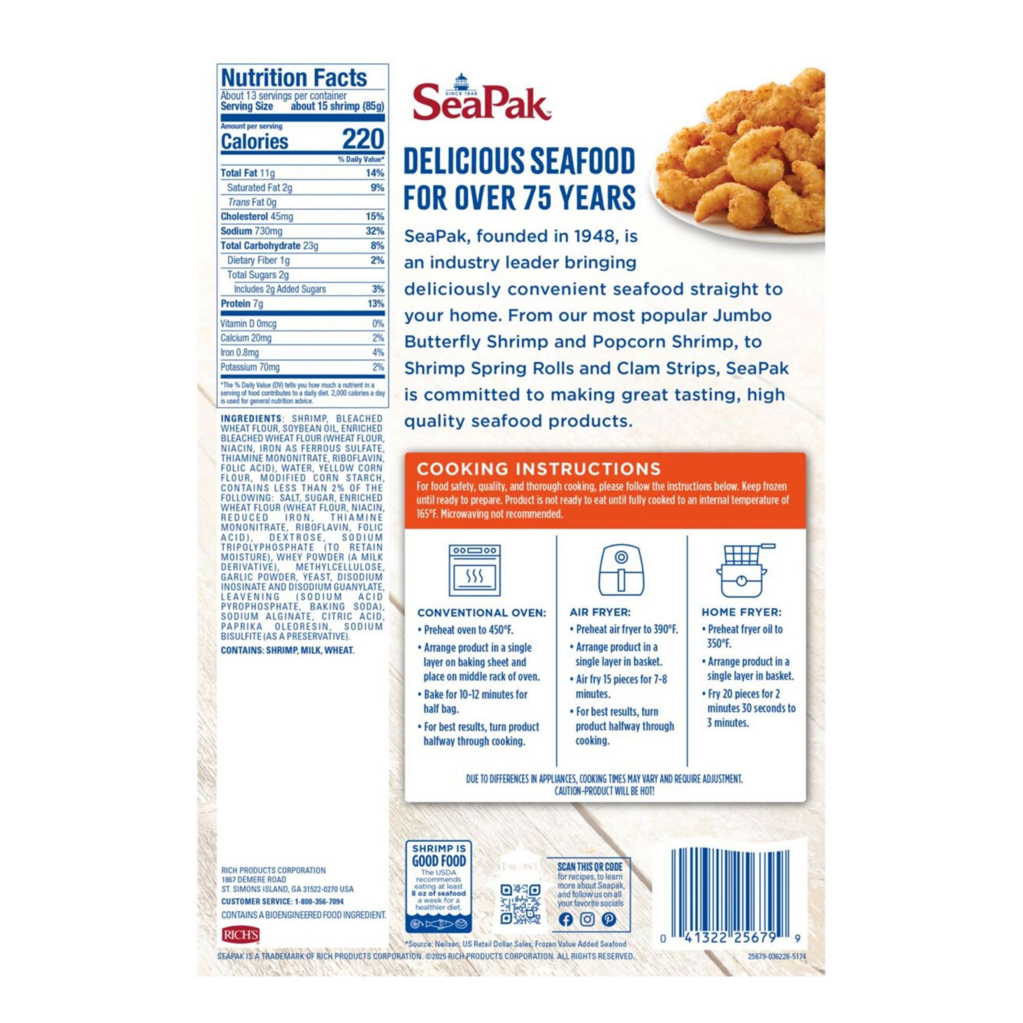SeaPak Popcorn Shrimp is famous for a reason. With a crispy breading, these easy-to-bake shrimp are the perfect mealtime solution. Responsibly-sourced, Tender Whole Shrimp in Our Signature Crispy Breading.