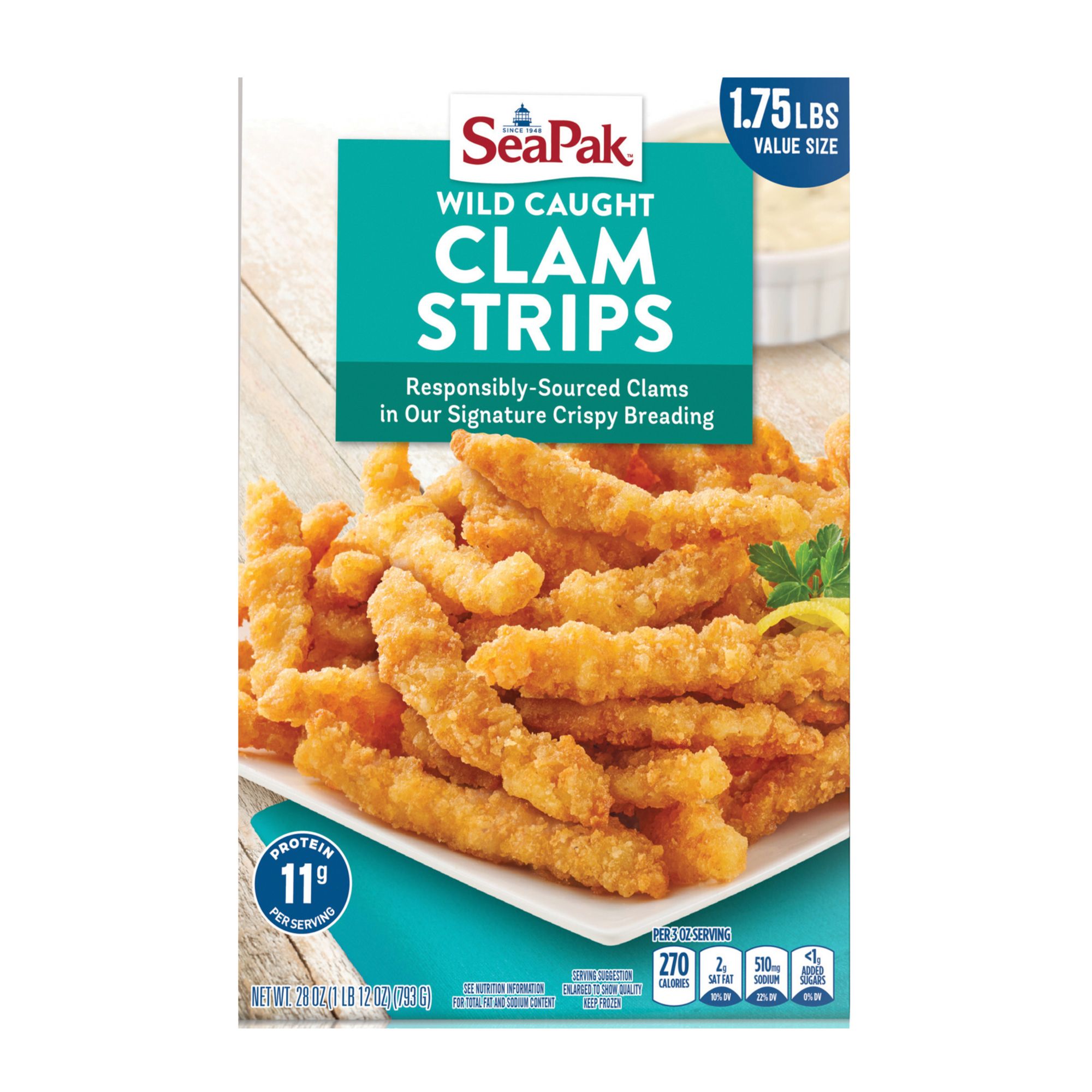 Includes clam strips, 28 oz.